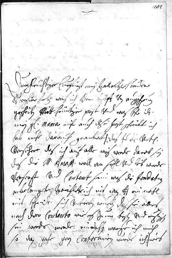 0001Durchleüchtiger Curfürst, mein herzallerlibster herr bruder 0002Überschike hirbey, was ich dem Bischoff von Augschpurg 0003geschriben mitt heüntiger post, vnd was ihr Durchlaucht, 0004mein geliebste mama, mihr auch dise post schreibt. Ich 0005hab nuhr darauf geantwort (Das ewer Durchlaucht vnterdehnigst 0006versichere, das ich auf alle weis werde darob sein, 0007das die Mutter Anna Magdalena woll an sehl vnd leib werde 0008versorgt vnd content sein. Was die fondation 0009anbelangt, zweiflete ich nit, wan dero Liebden ein mahl 0010mit ihr Durchlaucht sich vntereden wurden, das sie alles 0011nach dero contento, wie es zum besten vnd nuzligsten 0012sein werde, werde einrichten, warzue ich mich 0013so dan gahr gern conformiren wurde. Ich) weis
