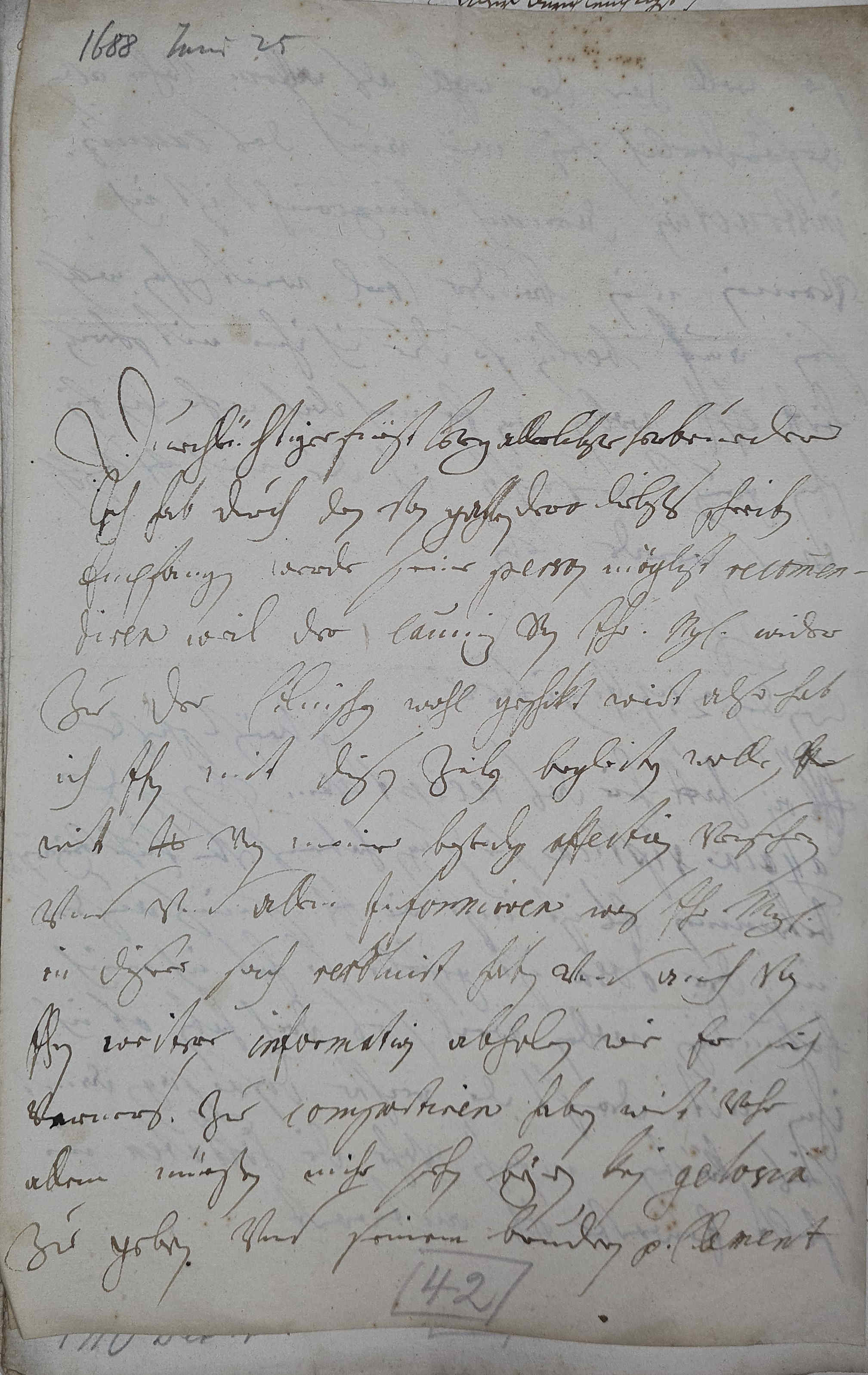 0014so woll zue der wahl als allem vohr allen 0015beförderlich sein, wie auch des Cauniz 0016instruction darnach eingericht ist. Ich 0017vermein, mein bruder Carl wirt schon wekh 0018sein auf Berlin, so due ich ihm nit schreiben, 0019bitt, dero Liebden wollen, wan er noch dah wehr, ihn ein 0020schönen gruß ausrichten. Ich due mich dero Liebden befehlen 0021vnd werde sterben 0022dero Liebden 0023getreüst schwester 0024EMT 0025Wien den 25ten junij 16880026Man hatt hier das recept vom 0027aqua stptica, sie sagen, habens von chur beyrischen 0028bekommen. Es ist iust wie dero Liebden seins, außer 0029in der dosa ist gefehlt, so habe ich mich 0030erkundigen wollen, weil sies doch haben, ob ich 0031ihnen nit derft die rechte dosa sagen, damit 0032sies könten machen vohr die soldaten im 0033felt. Erwarte dero Liebden antwort.