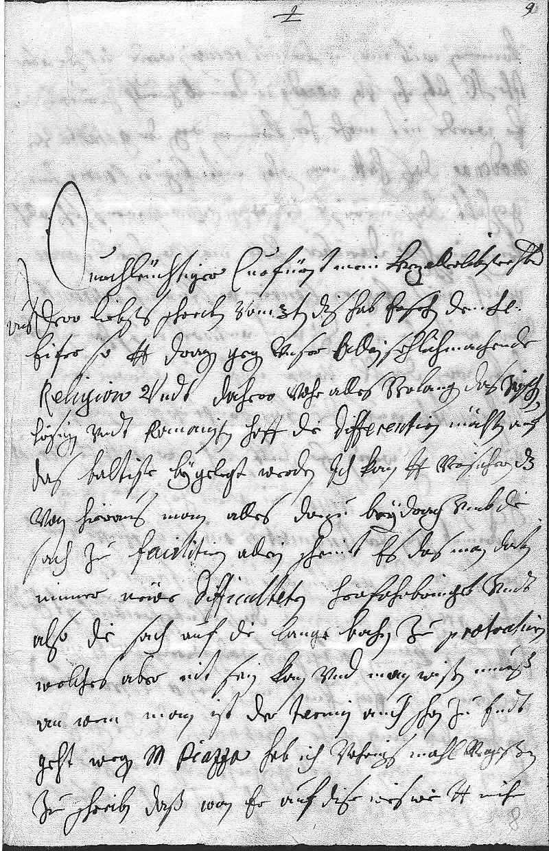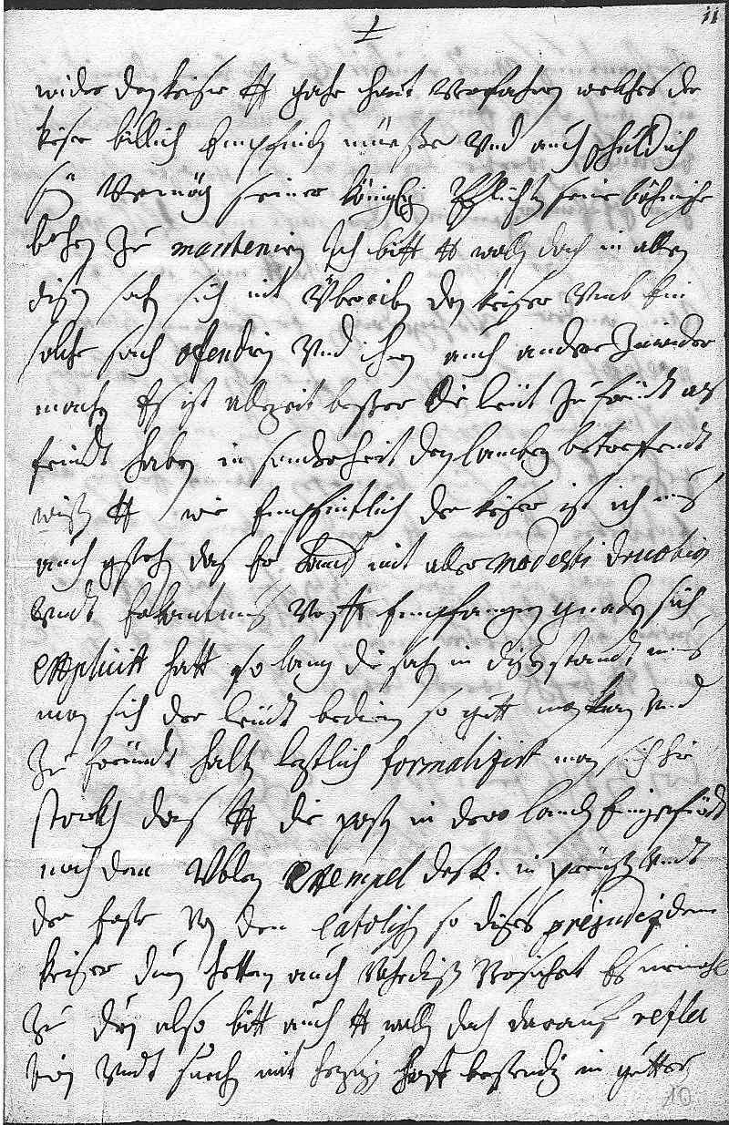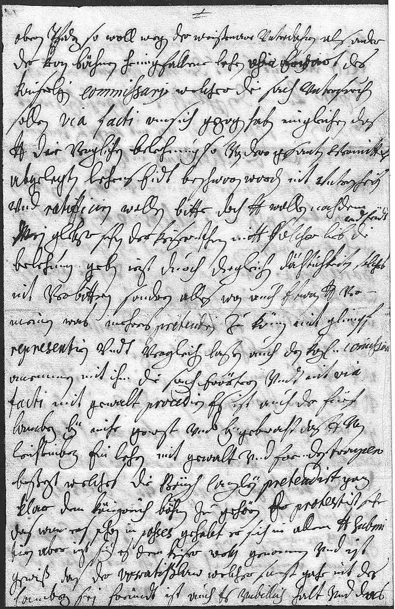 0001Durchleüchtiger Curfürst, mein herzallerlibster herr bruder 0002Aus dero liebsts schreiben vom 3ten dis hab ersehen dem heiligen 0003eifer, so dero Liebden dragen gegen vnser allein sehlichmachende 0004religion, vndt dahero vohr alles verlangen, das zwischen 0005hiesigen vndt romanischen hoff die differentien möchten auf 0006das baltiste beygelegt werden. Ich kan dero Liebden versichern, das 0007von hieraus man alles dazu beydrag, vmb die 0008sach zu facilitiren, allein scheinet es, das man dorten 0009immer newe difficulteten herfohrbringet vndt 0010also die sach auf die lange bahn zu protrahiren, 0011welches aber nit sein kann vnd man wißen mueß, 0012an wem man ist, der termin auch schon zu endt 0013geht. Wegen Monsignore Piazza hab ich vohrigs mahl vergeßen 0014zu schreiben, daß wan er auf dise weis, wie dero Liebden mihr schreiben,