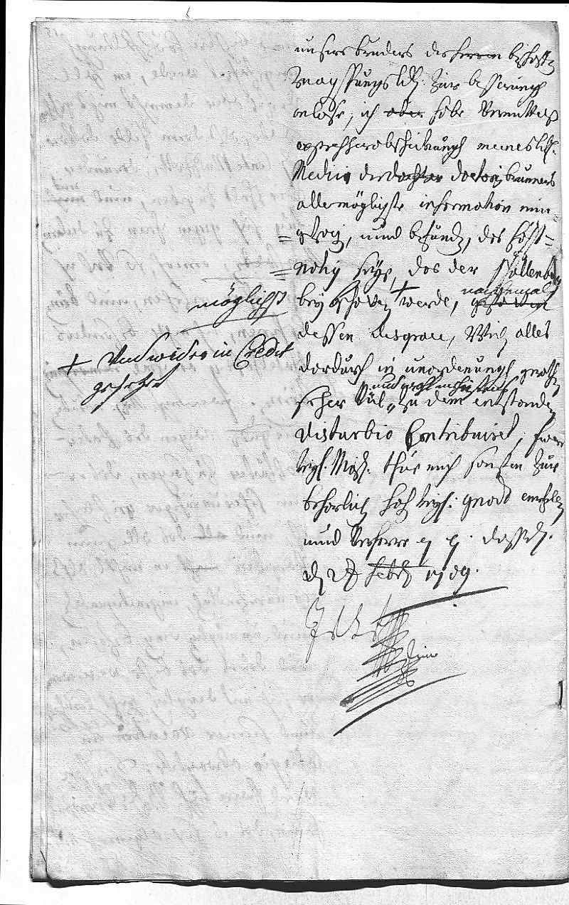 Zweifelt nicht, dass Prinz Jakob (Sobieski) auch zur Abgeltung der sächsischen Schuld mit Bargeld bereit sein wird, wenn das Lehen erledigt ist. – Freut sich, dass die größten Schwierigkeiten bei im Konflikt um Comacchio behoben sind und hofft, dass sie bald ganz beigelegt werden können, damit nicht die Unkatholischen davon profitieren. – Hat 1.600 Mann für den spanischen König (Karl) aufgebracht und auch zugestimmt, dessen Truppen in Katalonien aufzustocken. – In der Oberpfalz ist mit JWs Wissen nichts geschehen, was gegen den Lehenseid wäre, wie Graf Wiser mündlich näher erklären wird. Das Lehen Pfreimd ist keinesfalls böhmisch, da die Landgrafschaft Leuchtenberg ein Reichslehen ist. – Hat seine Truppen aus den Niederlanden zurückberufen, weil er sie, wie mit Prinz Eugen besprochen, nicht allein unterhalten kann. – Sendet in der Beilage, was er dem Kaiser wegen der Post geschrieben hat, und ist sicher, dass er nicht schlechter als andere gestellt werden wird. – Hat Bruder Karl (Philipp) 100.000 Gulden angewiesen. – Der Pater Hoßfurter ist ein unruhiger Geistlicher und schlägt nur unpraktikable Dinge vor. – Hat durch seinen Leibarzt Dr. Brunner Informationen über den Bischof von Augsburg (Bruder Alexander Sigismund) eingeholt; der Schallenberg sollte wieder in in seine vorherige Position gebracht werden, denn dass er in Ungnade war, hat viel zur Unordnung beigetragen.