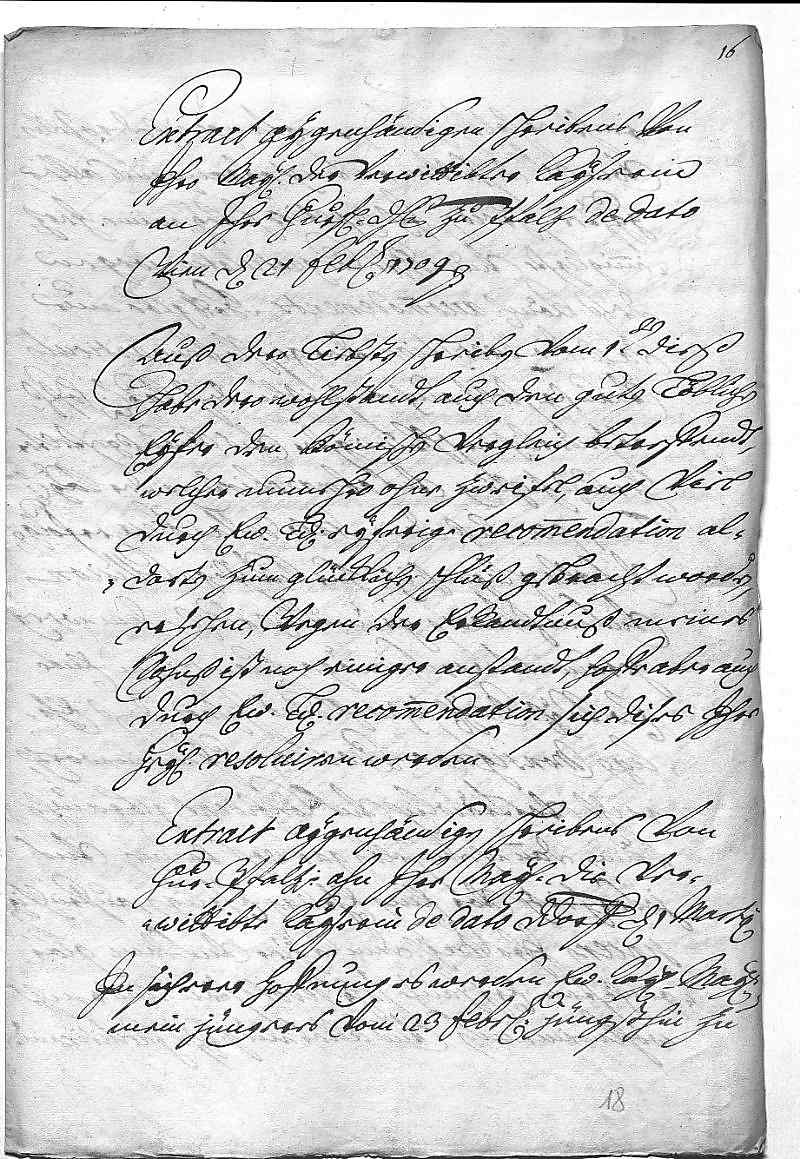 0001Extract aygenhändigen schreibens von 0002ihro Mayestät der verwittibten Kayserin 0003an ihre churfürstliche Durchlaucht zu Pfalz de dato 0004Wien den 21 februarij 1709 0005Auß dero liebsten schreiben vom 1ten dieß 0006habe dero wohlstandt, auch den guten löblichen 0007eyfer den römischen vergleich betreffendt, 0008welcher numehro ohne zweifel, auch viel 0009durch ewer Liebden eyferige recommendation al- 0010dorten zum glücklichen schluß gebracht worden, 0011ersehen. Wegen der erkandtnuß meines 0012sohnß ist noch einiger anstandt, hoffe aber auch 0013durch ewer Liebden recommendation sich dises ihre 0014Heiligkeit resoluiren werden.