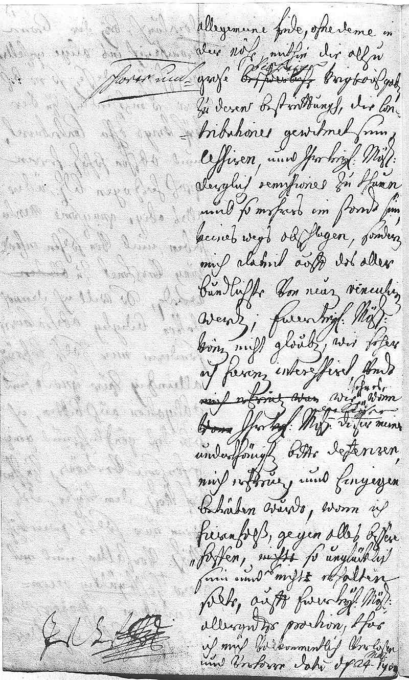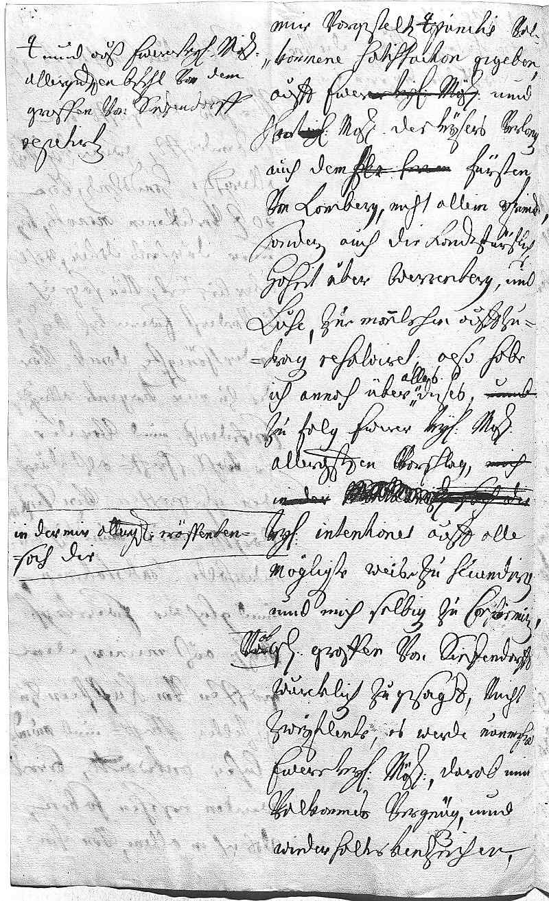 Hat EMTs Brief vom 30. April durch den Grafen Sinzendorf erhalten und dankt für ihr Vertrauen. – Wird dem Fürsten Lamberg nicht nur Pfreimd, sondern auch die landesfürstliche Hoheit über Wernberg und Luhe als Mannlehen auftragen und damit mehr als verlangt tun. – Zweifelt daher nicht, dass der Kaiser ihm die Bitte gewähren wird, den Großherzog (von Toskana) von weiteren Kriegskontributionen zu befreien. Der Kaiser wird dies umso weniger abschlagen, als der Frieden ohnehin bereits nahe ist.