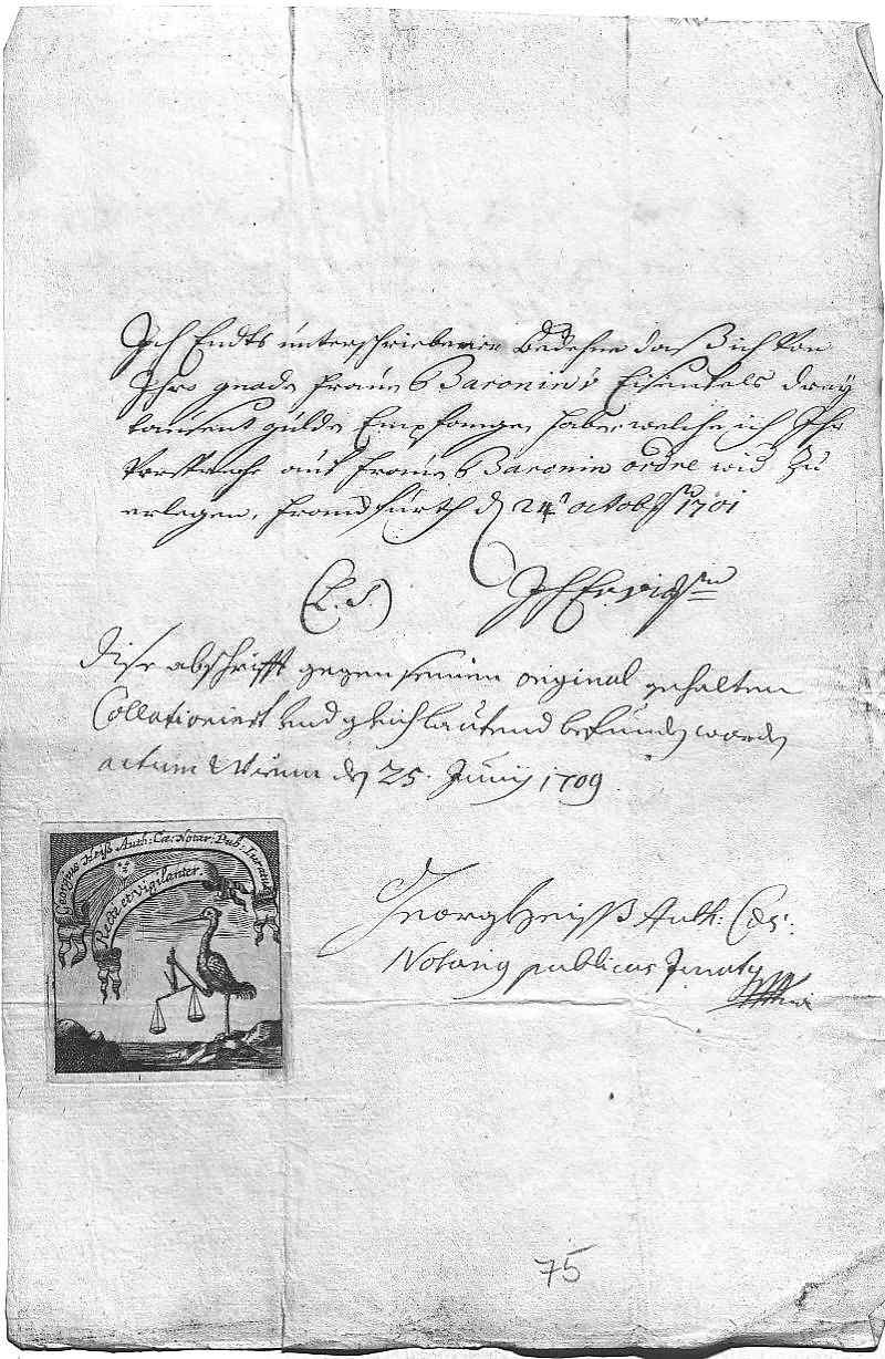0109bedanken vohr die gnad, so sie dem Blumendal 0110erweisen wollen. Wegen des ander trompetter hab ich kein in- 0111formation in der sach gehabt als was er durch sein me- 0112morial eingeben, dero Liebden aber werden duen, was recht ist, dan 0113ich kein ander intention gehabt als pro justitia zu 0114reccomendiren, die ich niks mers verlang, als in allen 0115gelegenheiten dero Liebden zu erweisen, das ich bestendig verbleibe 0116dero Liebden 0117getrewste schwester 0118Eleonora 0119Wien den 20ten jullij 1709 0120Dißes beyligende hatt mihr ein weib geben, die pretendirt 0121dißes von des Violett seiner erbschafft, dero Liebden aber werden 0122in disen wie in allem duen, was die bilichkeit sein 0123wirt, nuhr das ich weis, obs recht oder nit ist, damit 0124das weib abweisen kann.