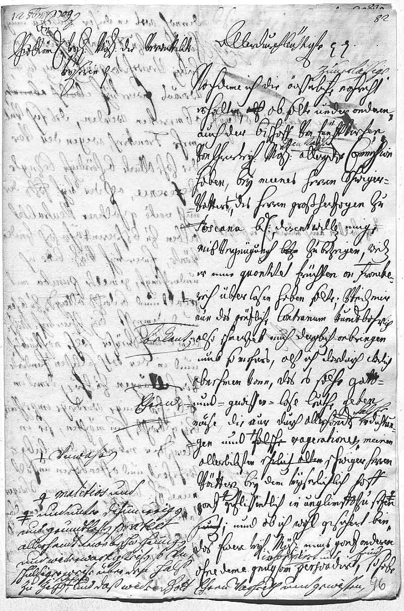 Sendet beiliegend einige Puncta, aus denen hervorgeht, dass sein Schwiegervater, der Großherzog von Toskana, sich entgegen allen Verleumdungen durch seine beständige Rücksicht auf die Alliierten dem Vorwurf der Neutralitätsverletzung durch Frankreich aussetzt. Bittet daher um EMTs Protektion für ihn.