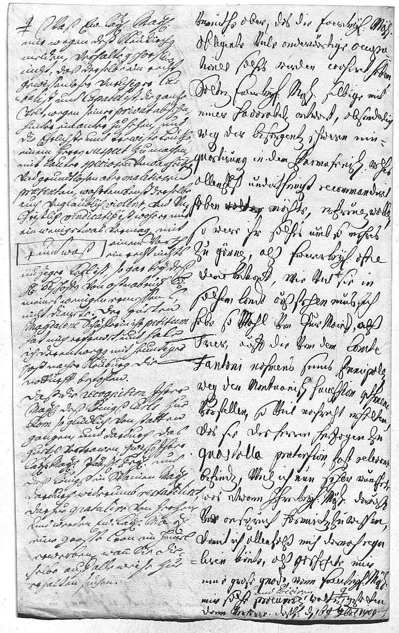 Hofft, dass EMTs Mahnschreiben (an die Schwägerin Anna Maria Franziska von Toskana) den gewünschten Effekt hat, zumal der junge Graf Löwenstein nicht nur eine sehr ungleiche Partie darstellt, sondern auch bei schlechter Gesundheit sein soll. – Der (Hoch- und) Deutschmeister (Bruder Franz Ludwig) hat in Mainz bereits 15 von 24 Stimmen und stimmt zu, vorerst abzuwarten. – Sendet beiliegend, was ihm die Herzogin zu Parma (Schwester Dorothea Sophie) auf Befehl der verwitweten Königin in Spanien (Schwester Maria Anna) geschrieben hat, und seine Antwort. Es würde nicht schaden, wenn das Interesse der Königin durch einen Minister JWs betrieben wird, damit sie nicht neuerlich wie beim Präliminarfrieden vergessen wird. – Bittet um Mitteilung der kaiserlichen Entscheidung zum Erbanspruch des Herzogs von Guastalla auf Mantua, damit er sich danach richten kann. – Der Neukirchen ist ein gewissenloser Intrigant, der aus Privatinteresse die ehrlichsten und treuesten Leute seinem Herrn grundlos suspekt macht. – Hat mit heutiger Post nach Neuburg veranlasst, dass der Bitte der guten Magdalena Schäfferin entsprochen wird. – Gratuliert zur Anerkennung König Karls (von Spanien) in Rom.