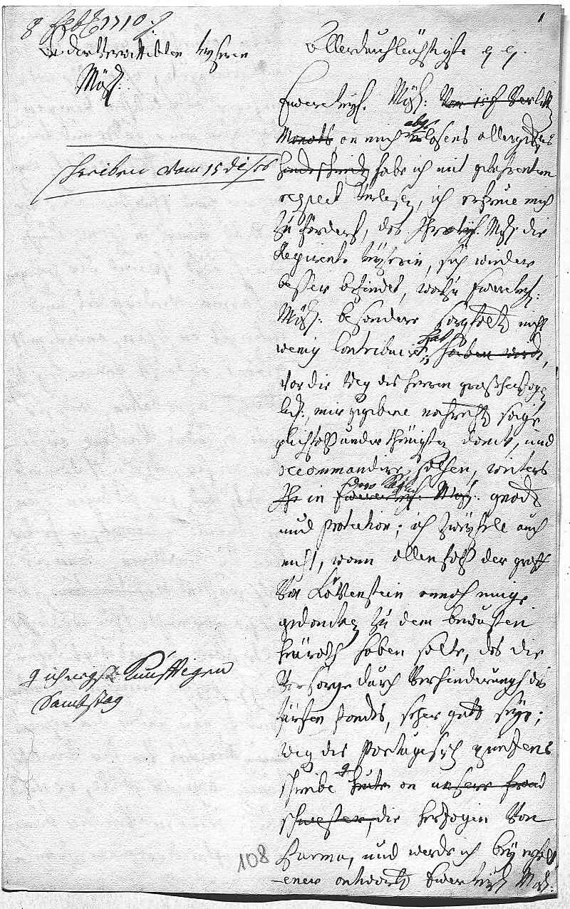 Freut sich, dass es der regierenden Kaiserin (Amalia Wilhelmina) wieder gut geht. – Dankt für die Nachricht wegen des Großherzogs (von Toskana). – Findet es sehr gut, für den Fall, dass der Graf Löwenstein noch an die bewusste Heirat (mit JWs und EMTs Nichte) denkt, vorsorglich seine Erhebung in den Fürstenstand zu verhindern. – Schreibt wegen des portugiesischen Prinzen an die Herzogin von Parma (Schwester Dorothea Sophie); wünscht ihrer Königin in Portugal (EMTs Tochter Maria Anna Josepha ) eine gute und vertrauliche Gesellschaft. – Die verwitwete Königin in Spanien (Schwester Maria Anna) hat ein besonderes Vertrauen zum Wiser; musste daher zustimmen, dass er als ihr Minister agieren soll. – Mantua wäre in deutschen Händen sehr gut aufgehoben, solange man keine Ungerechtigkeit begeht.