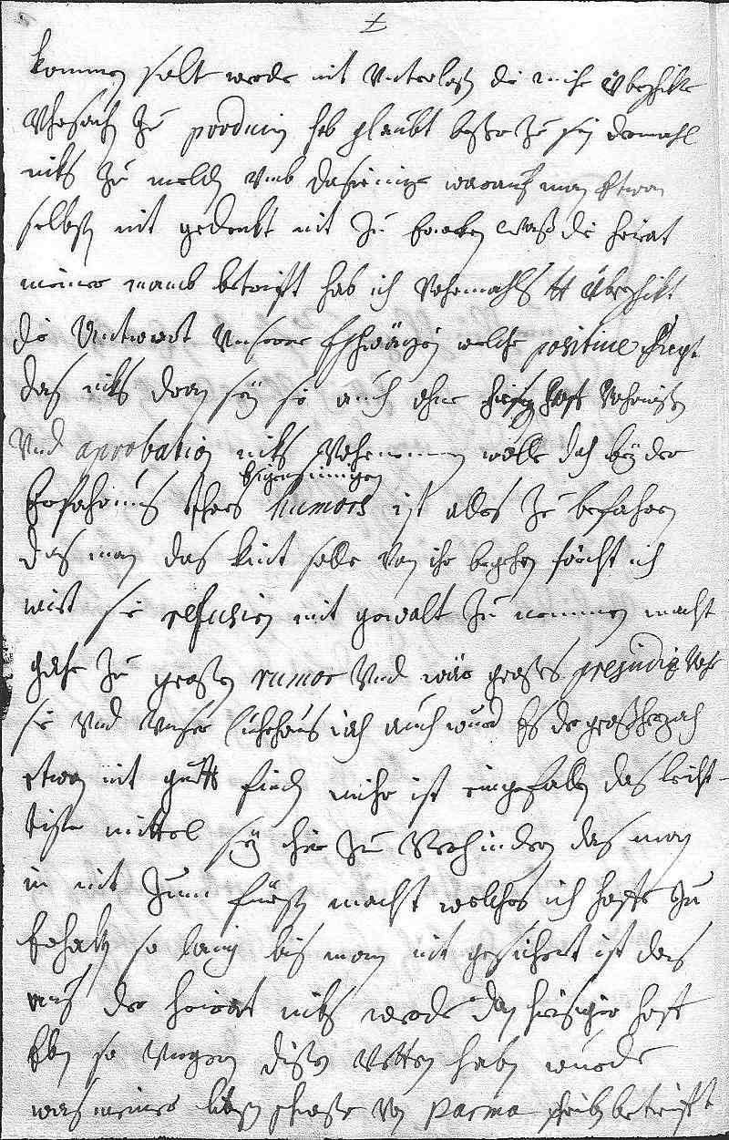 0016kommen solt, werde nit vnterlaßen, die mihr überschikte 0017vhrsachen zu produciren, hab glaubt beßer zu sein, dermahl 0018niks zu melden vmb dasienige, warauf man etwan 0019selbsten nit gedenkt, nit zu erweken. Waß die heirat 0020meiner mamb betrift, hab ich vohrmahls dero Liebden überschikt 0021die antwort vnserer schwägrin, welche positiue sagt, 0022das niks dran sey, sie auch ohne hiesigen hoff vohrwißen 0023vnd aprobation niks vohrnemmen wolle, doch bey der 0024erfahrung ihres eigensinnigen humors ist alles zu befahren. 0025Das man das kint solle von ihr begehren, förcht ich, 0026wirt sie refusiren, mit gewalt weg zu nemmen macht 0027gahr zu großen rumor vnd wär großes prejudiz vohr 0028sie vnd vnser cuhrhaus, iah auch wurd es der Großherzoch 0029etwan nit guett finden. Mihr ist eingefallen, das leicht- 0030tiste mittel sey, hier zu verhindern, das man 0031in nit zum Fürsten macht, welches ich hoffe zu 0032erhalten, so lang bis man nit gesichert ist, das 0033aus der heirat niks werde, dan hiesiger hoff 0034eben so vngern dißen vettern haben wurde. 0035Was meiner libsten schwester von Parma schreiben betrifft,
