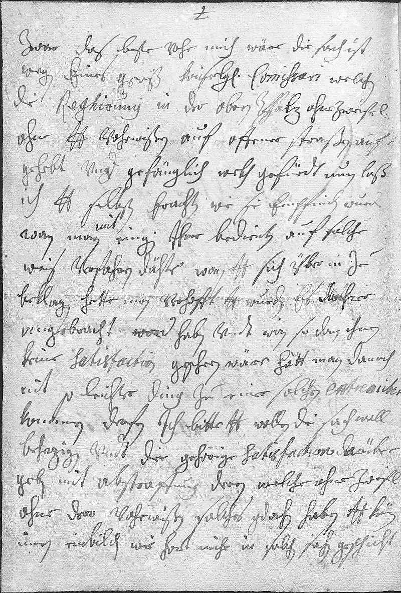 0013zwar das beste vohr mich wäre. Die sach ist 0014wegen eines gewißen kaiserligen comissari, welchen 0015die reghirung in der Obren Pfalz, ohne zweifel 0016ohne dero Liebden vohrwißen, auf offener straßen auf- 0017gehebt vnd gefänglich wekh gefürdt. Nun laß 0018ich dero Liebden selbsten erachten, wie sie empfinden wurden, 0019wan man mit einigen ihrer bedienten auf solche 0020weis verfahren dähte. Wan dero Liebden sich über in zu 0021beklagen haben, hette man verhofft, dero Liebden wurden es dahier 0022angebracht word haben, vndt wan so dan ihnen 0023keine satisfaction geschen wäre, hätt man danoch 0024nit so leichter ding zu einer solchen extremitet 0025kommen derfen. Ich bitte, dero Liebden wollen die sach woll 0026beherzigen vndt die gehörige satisfaction darüber 0027geben mit abstraffung deren, welche ohne zweifl 0028ohne dero vohrwißen solches gedahn haben. Dero Liebden können 0029innen einbilden, wie hart mihr in solchen sachen geschicht,