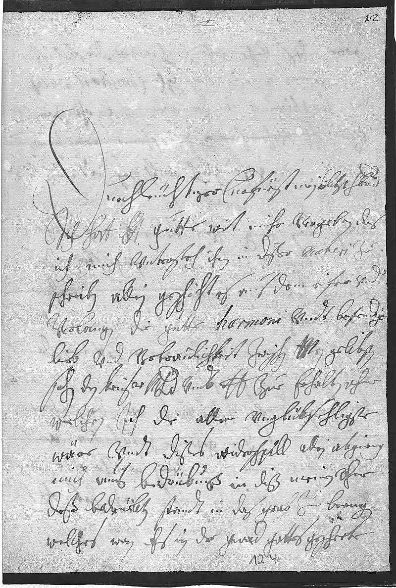 0001Durchleüchtiger Curfürst, mein herzlibster herr bruder 0002Ich hoff, dero Liebden gutte wirt mihr vergeben, das 0003ich mich vntersteh, ihnen in diser materi zu 0004schreiben. Allein geschicht es aus dem eifer vnd 0005verlangen, die gutte harmoni vndt bestendige 0006lieb vnd vertraulichkeit zwischen mein gelibsten 0007sohn, den Keiser Mayestät Liebden, vndt dero Liebden zue erhalten, ohne 0008welchen ich die aller vnglüksehligste 0009wäre vndt dises widerschpill allein abgieng, 0010mich aus bedrübnuß in disen meinen ohne 0011deß bedrüebten standt in das grab zu brengen, 0012welches, wan es in der gnad gottes gescheete,