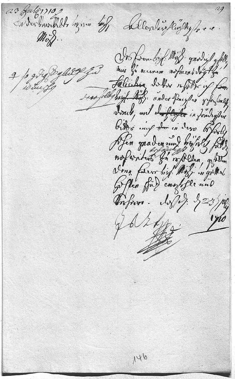 Johann Wilhelm von Pfalz-Neuburg an Eleonora Magdalena von Pfalz-Neuburg, Düsseldorf am 1710.07.23