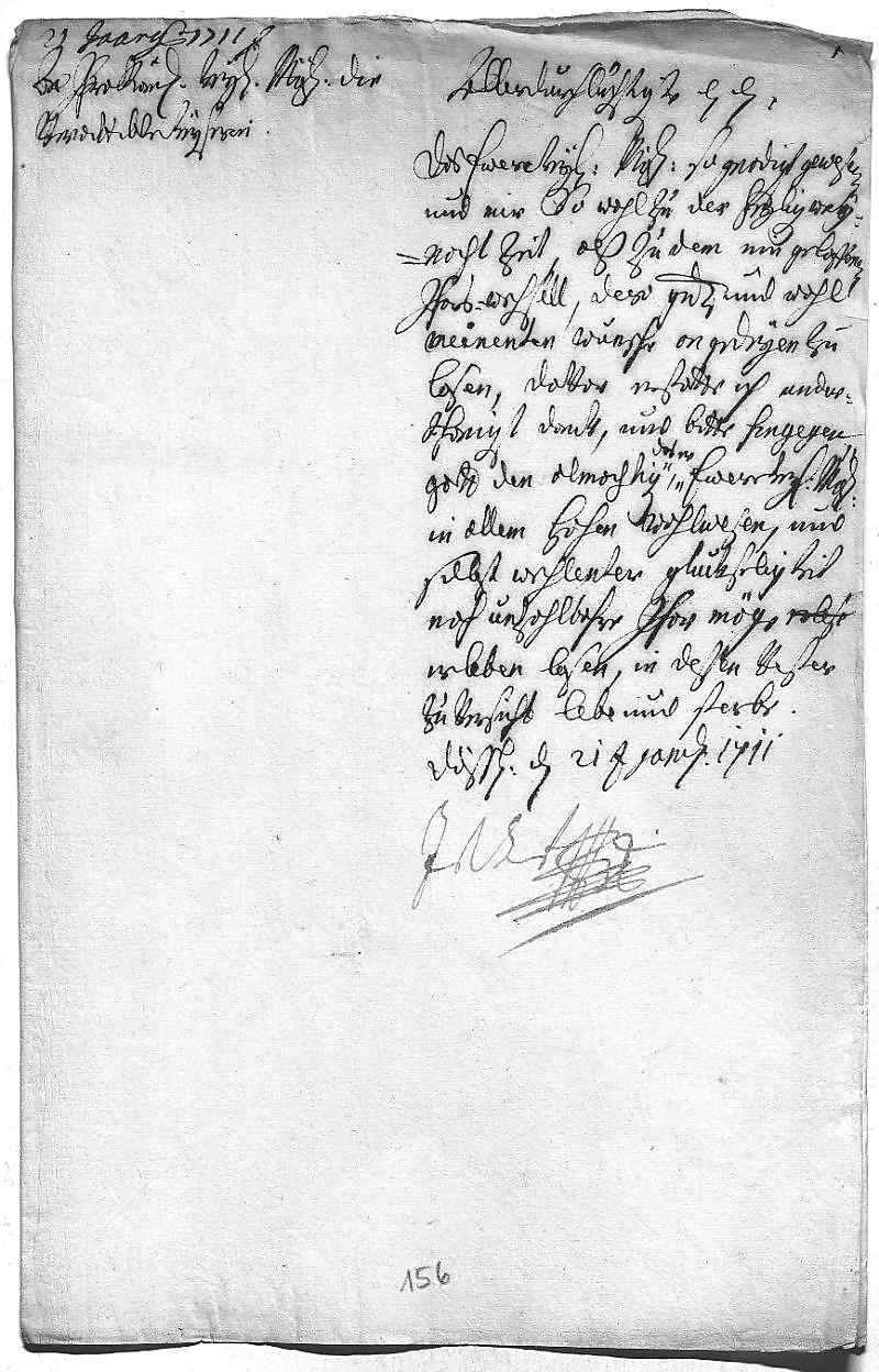 Johann Wilhelm von Pfalz-Neuburg an Eleonora Magdalena von Pfalz-Neuburg, Düsseldorf am 1711.01.21