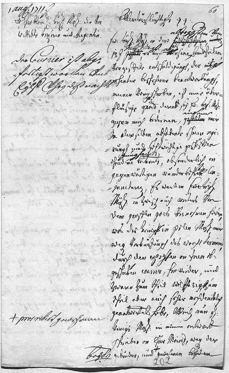 Johann Wilhelm von Pfalz-Neuburg an Eleonora Magdalena von Pfalz-Neuburg, Düsseldorf am 1711.08.01