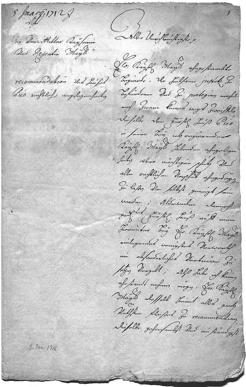 Empfiehlt das Haus Pico della Mirandola EMTs Protektion beim jetzt regierenden Kaiser (Karl VI.).