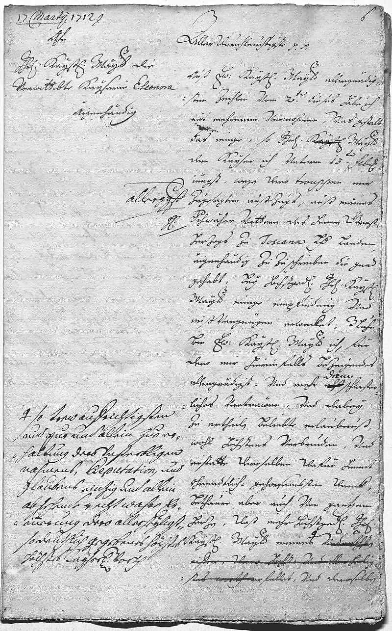 Johann Wilhelm von Pfalz-Neuburg an Eleonora Magdalena von Pfalz-Neuburg, Düsseldorf am 1712.03.17