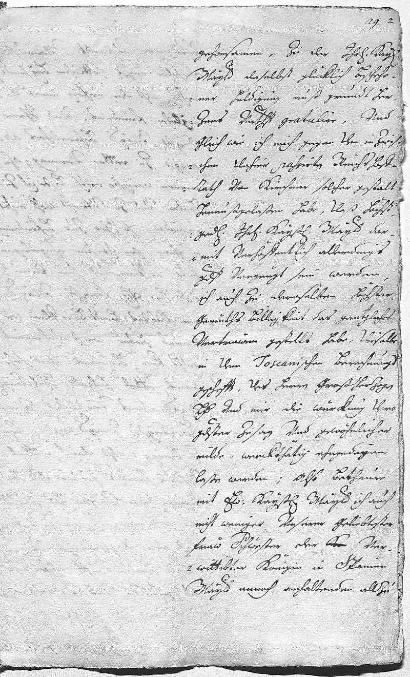 Hätte EMTs Briefe schneller beantwortet, wenn er nicht ihrem Befehl gemäß dem Rat seines Leibarztes gefolgt wäre. Gott sei Dank bessert sich seine Gesundheit von Tag zu Tag. Dankt für EMTs Anteilnahme. – Gratuliert zur glücklich abgelaufenen Erbhuldigung in den habsburgischen Erblanden. – Hat bereits dem Reichshofrat von Kirchner mitgeteilt, dass er und der Großherzog (von Toskana) wegen der toskanischen Rechnung ihr ganzes Vertrauen in EMT setzen. – Bemüht sich in London und Utrecht für seine Schwester (Maria Anna), die verwitwete Königin in Spanien, weiß aber auch keinen besseren Postweg als über seine Schwester (Dorothea Sophie), die Herzogin von Parma. – Bedauert, dass die Anreise der regierenden Kaiserin (Elisabeth Christine) sich verzögert und damit die Sukzession des Erzhauses in Gefahr bleibt. – Sendet dem Bischof von Augsburg (Bruder Alexander Sigismund) den Rat seines Leibarztes. – Wird sich über die Stiftung ihres Vaters, über die EMTs Beichtvater Pater Miller aus Italien geschrieben wurde, informieren und dann die nötige Verfügung machen. – Erwartet Bruder Karl (Philipp) in Kürze; hat bisher niemanden mit der Heiratswerbung beauftragt und wünscht nur, dass das neuburgische Kurhaus einen männlichen Erben erhält.