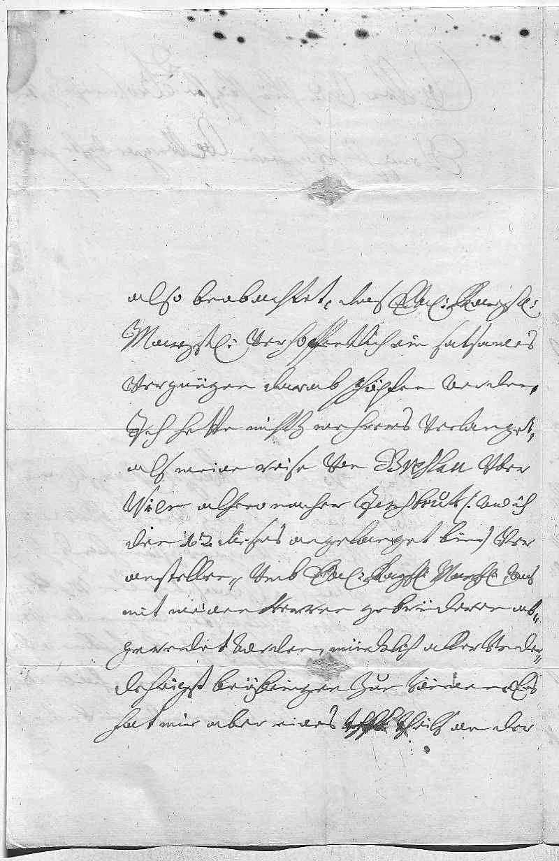 0021den Kaißer sehr schwehr, iah zue sagen vnmöglich 0022vallen wirt, solche capitalien abzuzahlen. Ich findt 0023auch, das es vohr vnsern herrn brudern selbst höchst schädlich 0024ist, dan es scheindt, das dorten gahr ein schlechte 0025economia gefürdt werde, vndt wan er die capi- 0026talien nach vndt nach verzehrt, wirt ihm entlich 0027gahr niks vbrich bleiben. Dero Liebden wollen ihm doch über 0028eins vnd anders zueschreiben, nemlich ein baldige 0029resolution einer heirat vndt beßrer economia, 0030das er seine capitalien nicht angreifen solle, 0031welches ich auch nit weis, ob er mit gewißen 0032duen kan, weil seiner dochter auch dauon gehört. 0033Ich due dero Liebden gahrzu lang aufhalten, bitte nach- 0034mahlen, wan sie noch die allzeit gezeigte, wie woll 0035von mir vnuerdiente lieb gegen mich dragen, sich 0036mit eigenhendiger antwort nit zue bemühen, 0037sondern nuhr mit andrer hant mich dero continuirten 0038vndt gutten wollstandt zu versichren, so bin ich content, 0039die ich lebe vnd sterbe 0040dero Liebden 0041getrewste schwester 0042Eleonora 0043Wien den 22ten merz 1713 0044Den Ralshausen due auch in dero Liebden gnad befehlen.