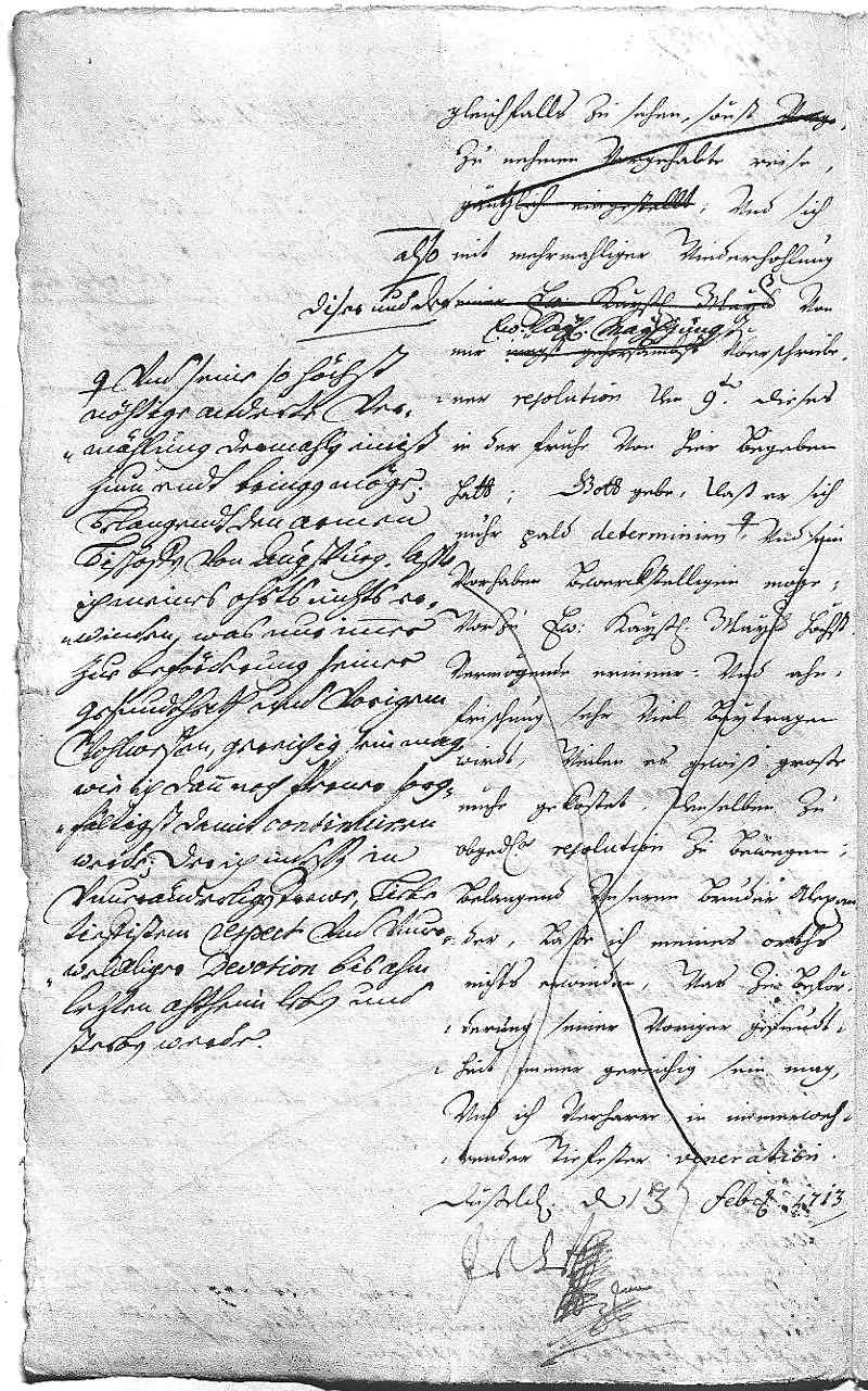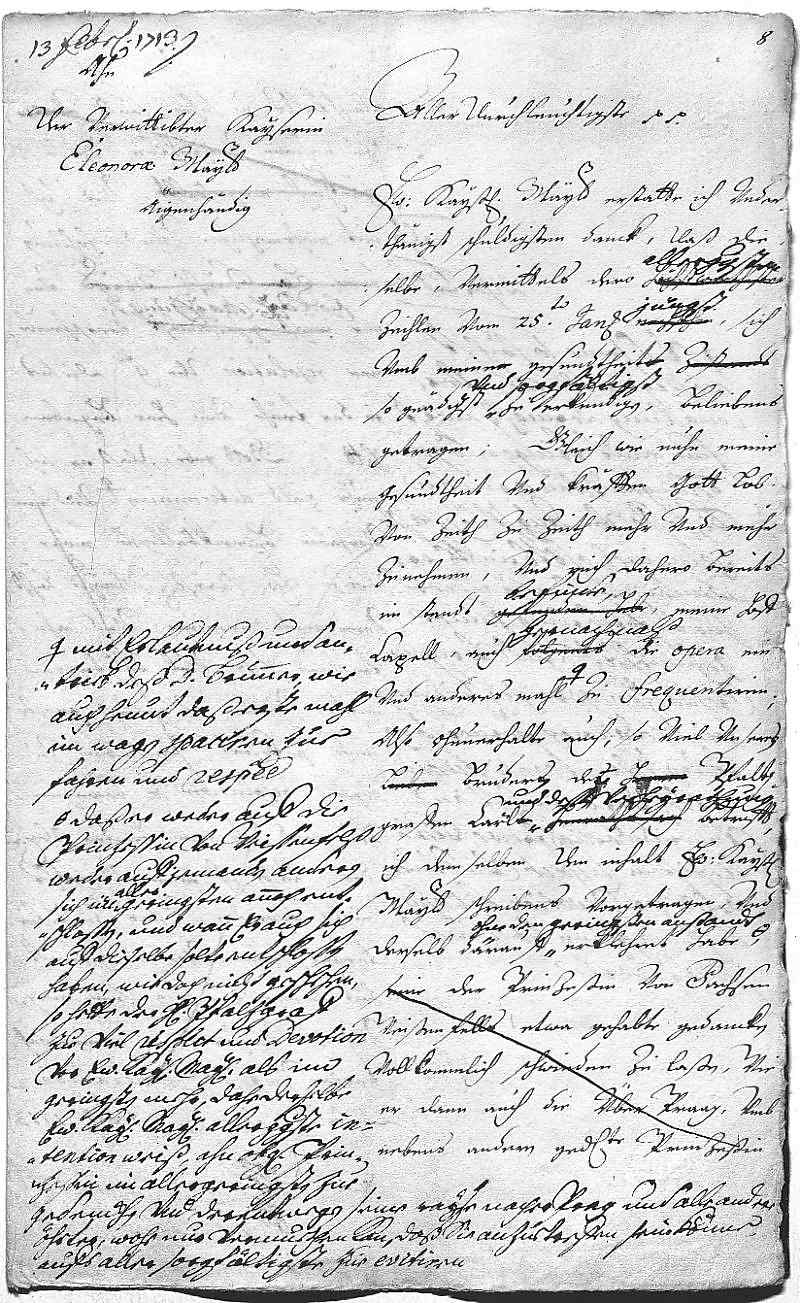 Johann Wilhelm von Pfalz-Neuburg an Eleonora Magdalena von Pfalz-Neuburg, Düsseldorf am 1713.02.13