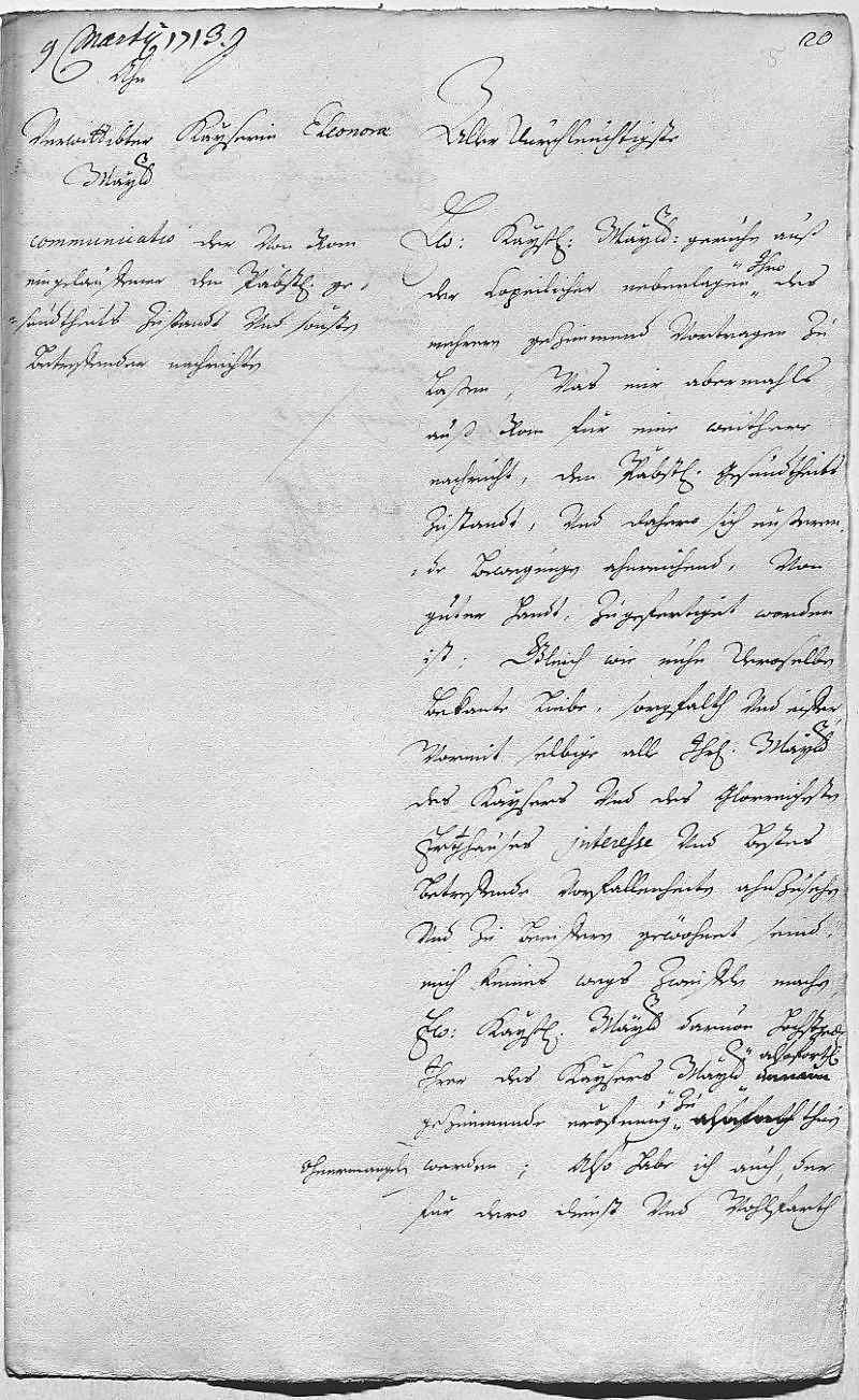 Johann Wilhelm von Pfalz-Neuburg an Eleonora Magdalena von Pfalz-Neuburg, Düsseldorf am 1713.03.09
