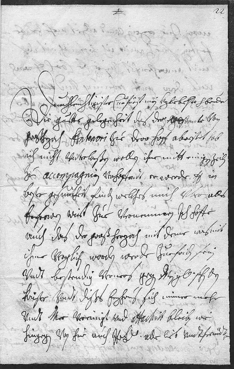 0001Durchleüchtigister Curfürst, mein herzliebester herr bruder 0002Die guette gelegenheit, das der geßante von 0003Großherzoch Antenori zue dero hoff abreiset, hab 0004ich nicht vnterlaßen wollen, ihne mitt einigen zeilen 0005zu accompagniren, verhoffendt, er werde dero Liebden in 0006bester gesuntheit finden, welches mich vber alles 0007erfrewen wirt zue vernemmen. Ich hoffe 0008auch, das der Großherzoch mit deme, was mit 0009ihme verglichen worden, werde zuefriden sein 0010vndt bestendig verners gegen mein geliebsten sohn, den 0011Kaißer, vndt dißes erzhaus sich immer mehr 0012vndt mer vereinigt vnd attachirt bleiben, wie 0013hingegen von hir auch ihr Liebden alle lieb vndtfreundtschaft