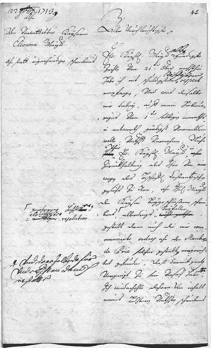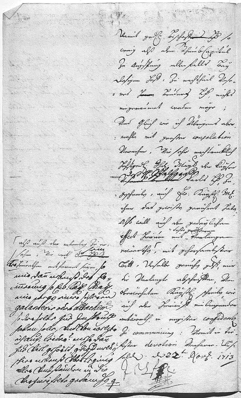 Johann Wilhelm von Pfalz-Neuburg an Eleonora Magdalena von Pfalz-Neuburg, Düsseldorf am 1713.11.22