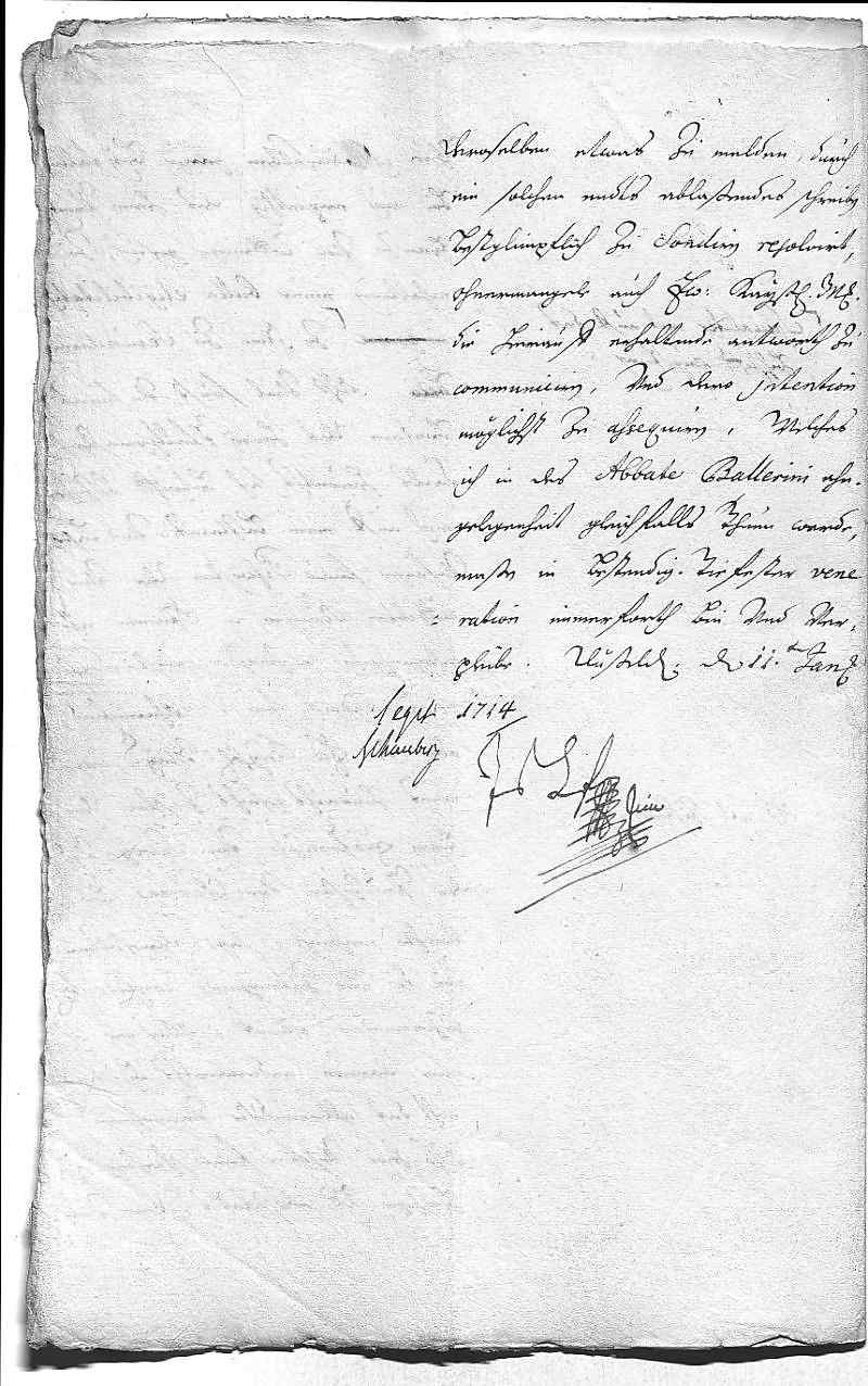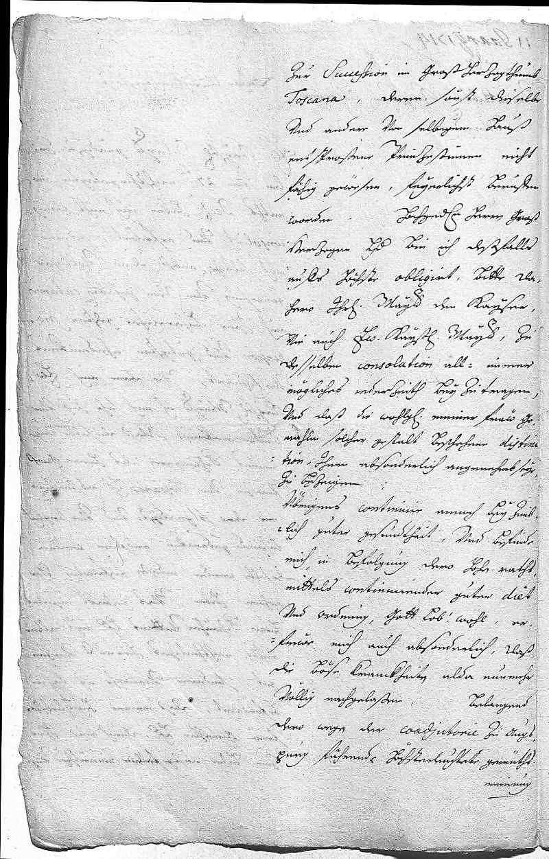 Freut sich, dass sich EMT vom Katarrh erholt hat. – Dankt für die Mitteilung von EMTs vorsorglichen Gedanken zum Tod seines Schwagers (Prinz Ferdinando von Toskana) . Sie wird bereits mit Freude vernommen haben, dass sein Schwiegervater (Großherzog von Toskana) JWs Gemahlin zur Nachfolge im Großherzogtum Toskana eingesetzt hat. – Seine (JWs) Gesundheit ist ziemlich gut. – Freut sich, dass die bösen Krankheiten (Pest) in Wien nachgelassen haben. – Stimmt EMT bezüglich der Koadjutorie in Augsburg zu. – Bietet an, das Gesuch des Prinzen Franz von Lothringen um eine Wählbarkeitsbulle für das Hochstift Augsburg in Rom zu unterstützen. – Bezieht sich bezüglich der Heirat seines Bruders Karl (Philipp) auf sein letzteres Schreiben. – Empfiehlt nochmals die Angelegenheiten seiner Schwester (Maria Anna), der verwitweten Königin in Spanien. – Hat bisher anderwärts von Heiratsplänen zwischen dem Erbprinzen von Savoyen und der Prinzessin von Parma noch nichts gehört. Wird daher vorsichtig bei seiner Schwester, der Herzogin (Dorothea Sophie) von Parma sondieren, ohne EMT zu erwähnen. – Wird EMT auch in der Angelegenheit des Abbate Ballerini berichten.