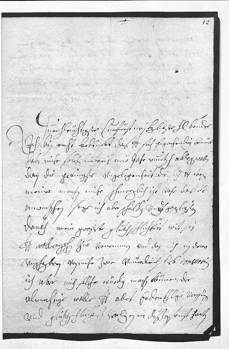 0001Durchleüchtigster Curfürst, mein herzlibster herr bruder 0002Ich bin recht bedrüebt, das dero Liebden sich eigenhendig bemüet 0003haben, mihr solchen liebreich new jahr wuntsch ablegen zu wollen, 0004dan die geringste vngelegenheit, die sich dero Liebden wegen 0005meiner machen, mihr schmerzlich ist. Vohr das libe 0006anwintschen sage ich aber schuldig vndt genzligsten 0007dankh, mein großete glükhsehlichkeit wirt sein, 0008dero Liebden wollergehn zue vernemmen vnd das mich in dero 0009vnschezbaren, von mihr zwar vnuerdienten lieb conserviren, 0010ich aber mich solcher würdig machen könne. Der 0011almechtige wolle dero Liebden alles erdenkhlige vergnügen 0012vnd glükhsehlichkeit verleyen in dißen sonst harten