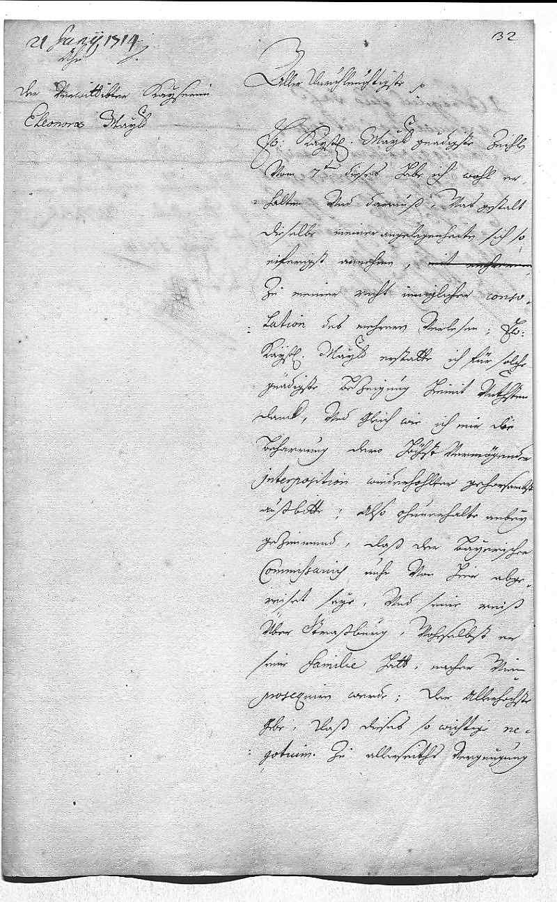 Johann Wilhelm von Pfalz-Neuburg an Eleonora Magdalena von Pfalz-Neuburg, Düsseldorf am 1714.06.21