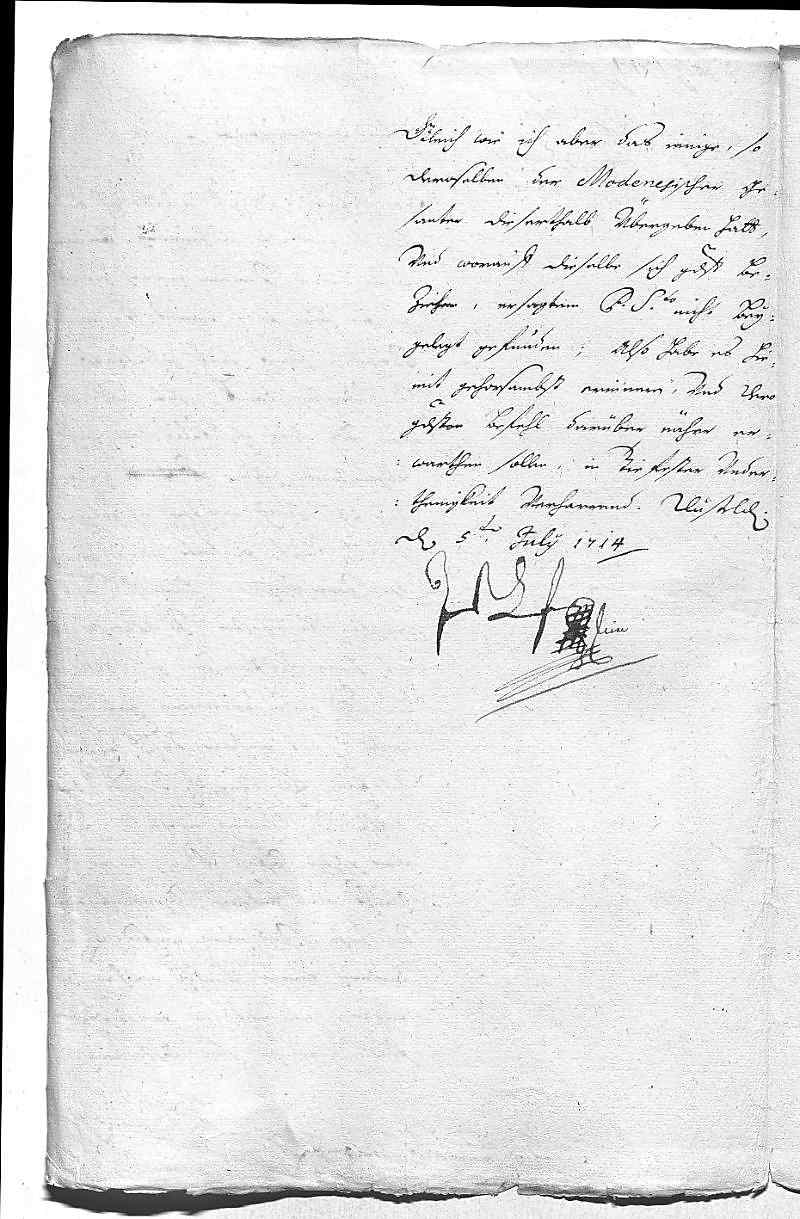Johann Wilhelm von Pfalz-Neuburg an Eleonora Magdalena von Pfalz-Neuburg, Düsseldorf am 1714.07.05