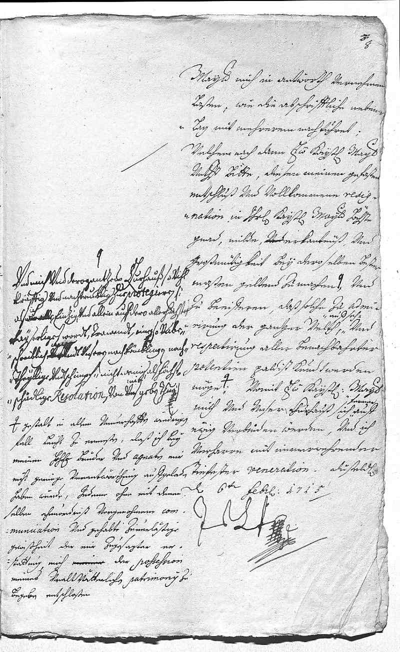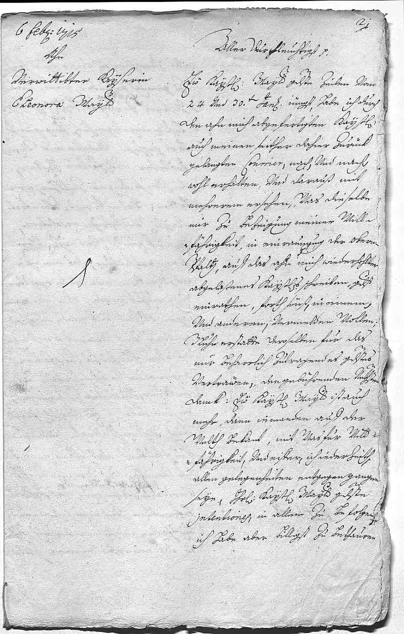 Johann Wilhelm von Pfalz-Neuburg an Eleonora Magdalena von Pfalz-Neuburg, Düsseldorf am 1715.02.06