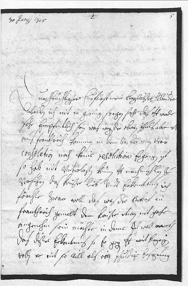 000130 januarii 17150002Durchleüchtigster Curfürst, mein herzliebster herr bruder 0003Weilen ich nit in geringen sorgen stehe, das dero Liebden werde 0004sehr empfintlich sein, was wegen der Oberen Pfals abermahl 0005aus Frankhreich kommen, in dem von hier wegen dero 0006consolation noch keine resolution ergangen ist, 0007so hab nit vnterlaßen können, dero Liebden nachmahlen zu 0008versichren des Kaißer lieb vndt erkantnus. Ich 0009förchte zwar woll, das, was der Beker in 0010Frankhreich gemelt, dem Kaißer etwan nit gahr 0011angenehm sein möchte, in deme ich woll merkh, 0012das dißer erkantnus, so er gegen dero Liebden wirt erzeigen 0013wollen, er nit so vill als ein schuldige ersezung