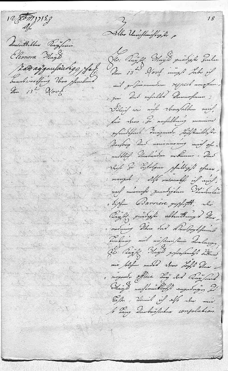 Johann Wilhelm von Pfalz-Neuburg an Eleonora Magdalena von Pfalz-Neuburg, Düsseldorf am 1715.12.12