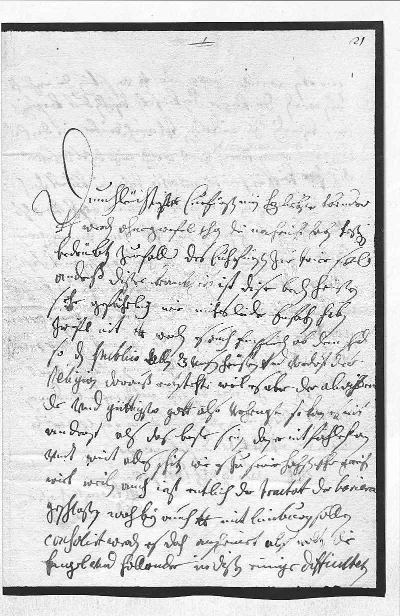 0001Durchleüchtigster Curfürst, mein herzliebster herr bruder 0002Dero Liebden werden ohnezweifel schon die nachricht haben hießigen 0003bedrübten zuefall des Cuhrfürsten zue Trier sehligen, 0004andenks. Dißer krankheit ist dise beden heüsern 0005sehr gefährlich, wie mihrs leider erfahren haben, 0006zweifl nit, dero Liebden werden es auch empfinden ob dem schaden, 0007so den publico, allen 3 vnsern heüßern vnd vordrist der 0008religion dorauß entsteht. Weil es aber der alwißen- 0009de vnd güttigste gott also verhengt, so kan es nit 0010anderst als das beste sein, dan er nit fählen kan, 0011vndt wirt alles schiken, wie es zu seiner hochsten ehr gereichen 0012wirt. Weilen auch izt entlich der tractat der bariera 0013geschloßen, woh bey auch dero Liebden mit Limburg sollen 0014consolirt werden, es doch anscheinet, als wolten die 0015engel vnd hollender in dißen einige difficulteten