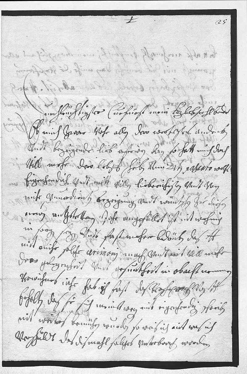 0001Durchleüchtigster Curfürst, mein herzliebster herr bruder 0002Ob mich zwar vohr allen dero wertestes andenken 0003vndt bezeigende lieb erfrewen kan, so hatt mich doch 0004vill mehr dero liebsts schreiben vom 24ten passato, welchs 0005eigenhendich vndt mitt villen liebreichisten vndt von 0006mihr vnuerdienten bezeigungen vndt wüntschen zue diesen 0007newen angetrettenen jahr angefüllet ist, nit wehnig 0008in sorgen sezen vndt fast mehrer bedrüben, das dero Liebden 0009mit mihr solche cerimoni machen vndt nit vill mehr 0010dero gelegenheit vndt gesuntheit in obacht nemmen. 0011Verwichnes iahr hab ich fast das verschprechen von dero Liebden 0012erhalten, das sie sich meinet wegen mit eigenhendigen schreiben 0013nit weiters bemühen wurden, so weis ich nit, was ich 0014verschuldt, das dis mahl solches vnterbrochen worden.