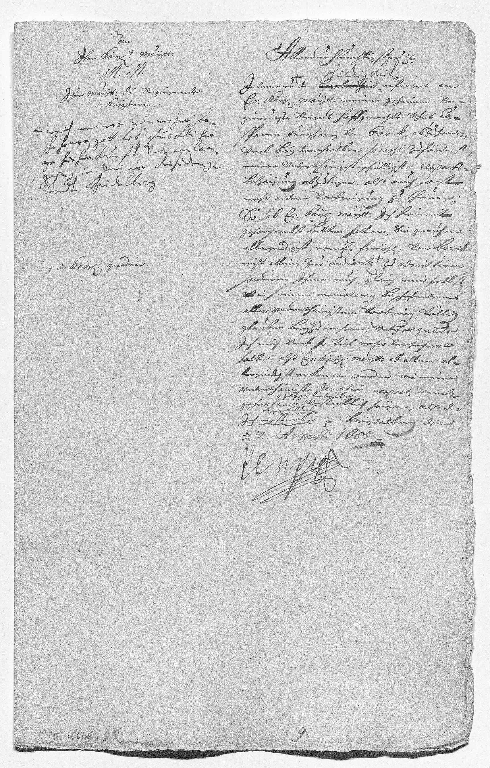 Kredenzschreiben für den Freiherrn Caspar von Borck, den PW nach seiner Ankunft in Heidelberg an den kaiserlichen Hof sendet.