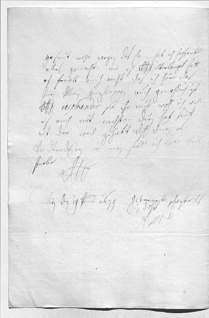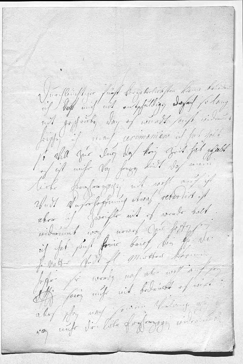 0001Durchleüchtiger Fürst, herzallerliebster herr brueder 0002Ich derf mich nit entschuldigen, das ich so lang 0003nit geschrieben, dan es wurdt sonst widerumb 0004heischen, ich mach cerimonien. Ich hab halt 0005so vill zue duen, das kein zeit hab gehabt. 0006Es ist mihr von herzen leidt, das mein 0007liebe Erzherzogin nit wohl auf ist 0008vndt vnser hoffnung etwas retardirt ist, 0009aber ich zweifle nit, es werde balt 0010widerumb was newes zue hoffen sein. 0011Ich hab sonst keine brief von ihr Durchlaucht 0012herr vatter vndt fraw muetter bekommen, 0013hoffe, sie werden noch aber wohl auf sein. 0014Dero Liebden seien nuhr nit bedrüebt, es wirt 0015alles schon nach seinem verlangen gehen, 0016wan nuhr die liebe Erzherzogin widerumb