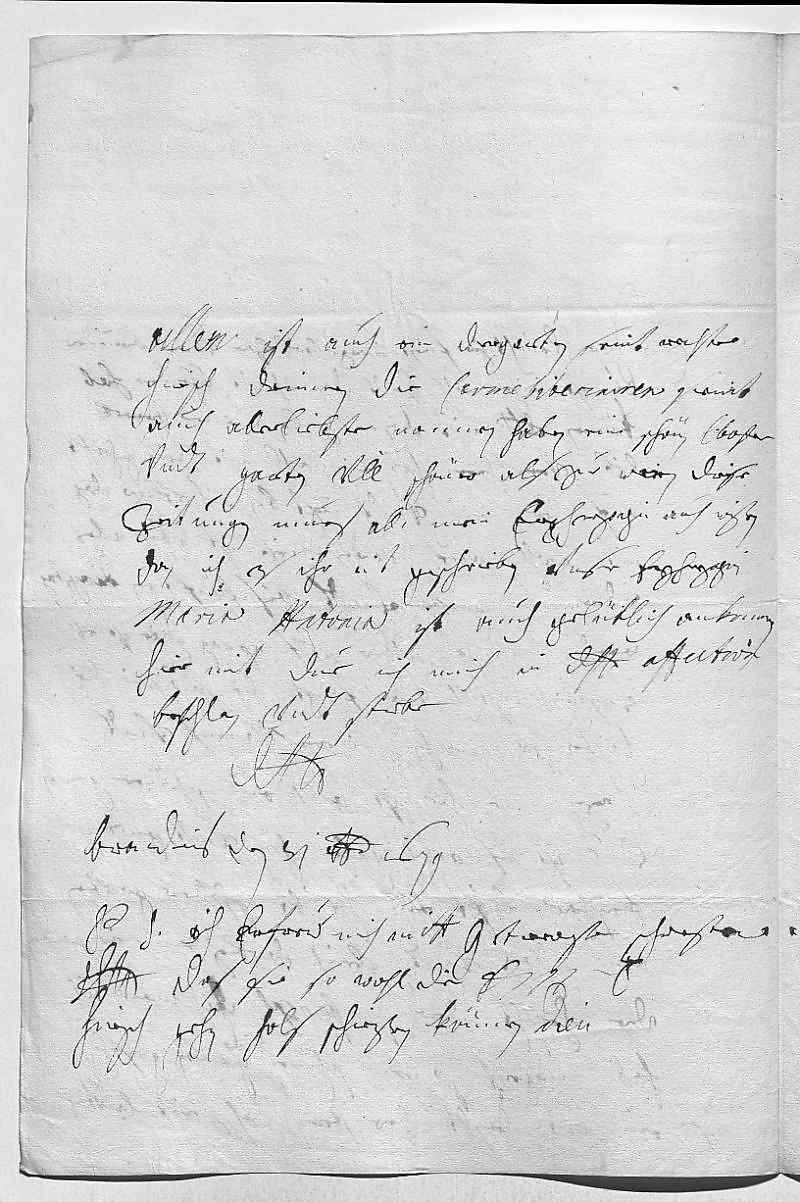 0001Durchleüchtiger Fürst, herzallerliebster herr brueder 0002Es ist mihr wohl leidt, das ich nit ehender hab 0003können dero Liebden mit diesen zeilen meiner trewen 0004lieb versicheren, hab einmahl nit zeit gehabt 0005auf der reis, vndt iezt bin ich etlige dag 0006nit wohl auf gewesen. Iezt ist aber alles 0007widerumb guett, vndt bis könftigen dingstag 0008werden mihr wider auf Prag . Hier ist es 0009vnsinich lustich, man fangt die saw wie die 0010haßen, so machen sie rei darauf vndt 0011hezen sie. Hie ist auch ein schöner garten, 0012zue 1? ist es auch gahr schön vndt guetter 0013frischer luft, ein haubt schöner garten 0014am schloß vndt gleich darbey ein diergarten, 0015der heischt der Pubensch . Ich mein, ich 0016hab nirgenst so ein schönen dier garten gesehen. 0017Ein ort heischt der Stern, dah seint lautter