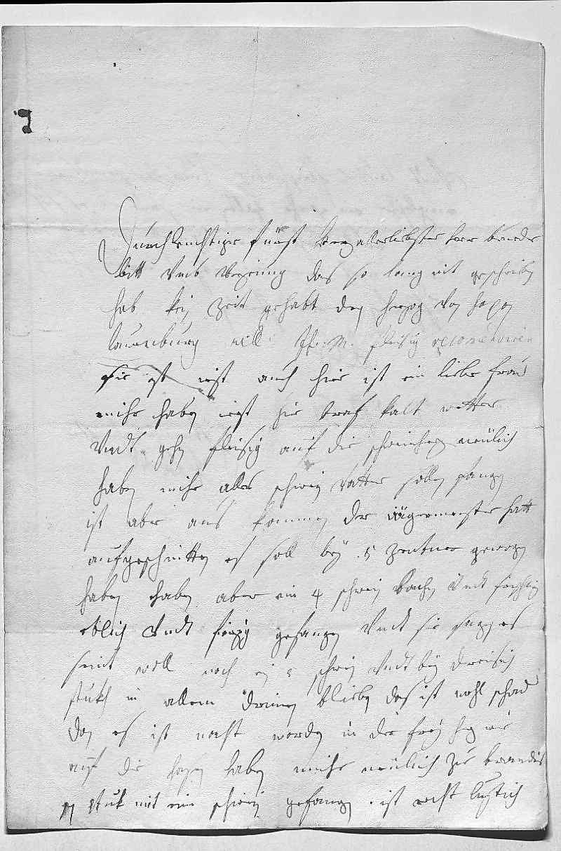 0001Durchleüchtiger Fürst, herzallerliebster herr brueder 0002Bitt vmb verzeiung, das so lang nit geschriben, 0003hab kein zeit gehabt. Den Herzog von Saxen 0004Lauenburg will ihr Mayestät fleisig recomendiren, 0005sie ist iezt auch hier, ist ein liebe fraw. 0006Mihr haben iezt hir braf kalt wetter 0007vndt gehen fleisig auf die schweinhez. Neülich 0008haben mihr aller schwein vatter sollen fangen, 0009ist aber aus kommen. Der Iägermeister hatt 0010aufgeschnitten, es soll bey 5 zentner gewogen 0011haben. Haben aber ein 4 schwein, bachen vndt frischling 0012etlich vndt firzig gefangen, vndt sie sagen, es 0013seint woll noch ein 5 schwein vndt bey dreisich 0014stukh in allem drinnen blieben. Das ist wohl schad, 0015dan es ist nacht worden. In der frej hez wie 0016auf die hasen haben mihr neülich zue Brandis 001711 stuk mit ein schwein gefangen, ist recht lustich,