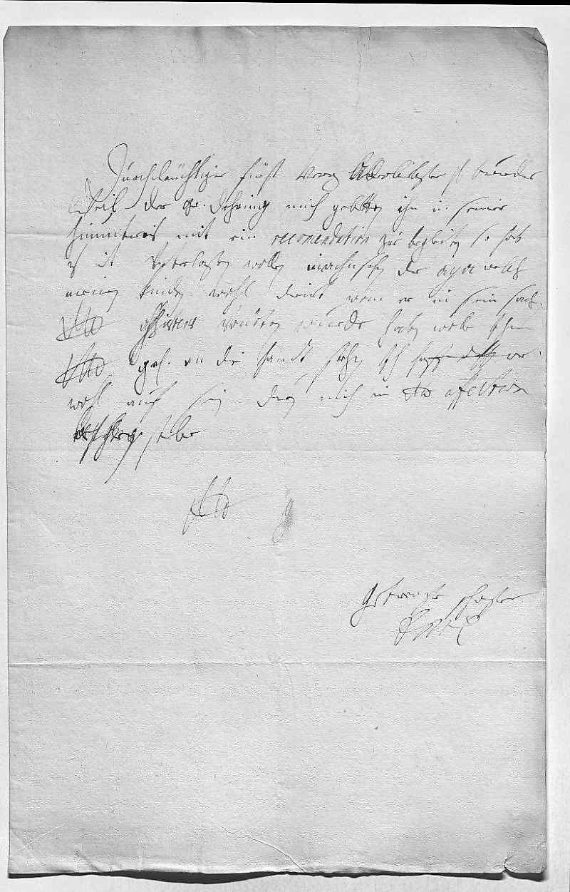 0001Durchleüchtiger Fürst, herz allerliebster herr brueder 0002Weil der Grav Dehring mich gebetten, ihn in seiner 0003hinuntereis mit ein recomendation zue begleiten, so hab 0004es nit vnterlaßen wollen inahnsehen der Aya, welche 0005meinen kindern wohl dienet. Wan er in sein sachen 0006dero Liebden assistens vonöten wurde haben, wolle ihn 0007dero Liebden gnädig an die handt stehen. Ich hoff, dero Liebden wer 0008wohl auf sein, due mich in dero Liebden affection 0009befehlen, sterbe 0010dero Liebden 0011getrewste schwester 0012EMT