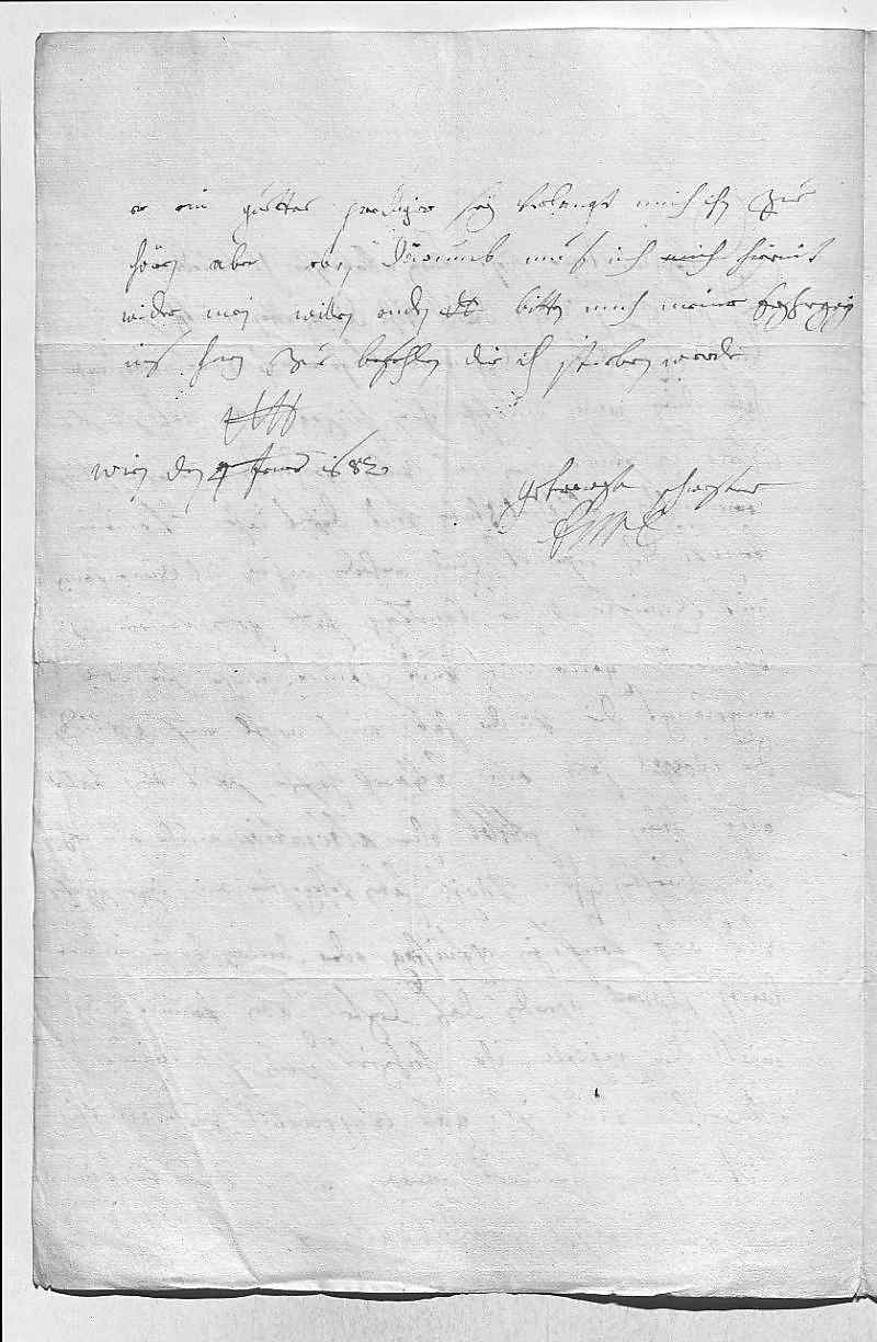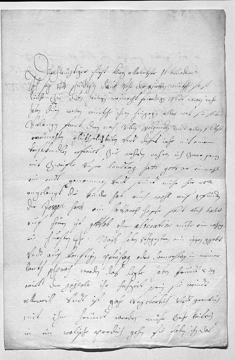 0001Durchleüchtiger Fürst, herz allerliebster herr brueder 0002Ich sag dero Liebden schuldigen dankh vohr die guetten wuntsch, so sie 0003mihr zue disen heiligen weinacht feierdagen vndt newen iahr 0004haben duen wollen. Wüntsche ihnen hingegen alles, was sie selber 0005verlangen, samt dern noch villen volgenden mit allen selbst 0006erwünschten glukhselichkeiten, vndt dises iahr mit einem 0007kristkindlen erfreüet zue wehrden, wahran ich zwar ganz 0008nit zweifle. Vnser landtag hatt gottlob einmahl 0009ein endt genommen, vndt seindt mihr hier woll 0010angelangt. Die kinder hab auch wohl auf gefunden, 0011der Josepl hatt ein cattarel, hoffe, solt auch balt 0012auf hören, ist gottlob ohne alteration, nuhr ein wehnig 0013ein huesten. Ihr Mayestät haben vohrgestren ein iagen gehabt, 0014vndt auf könftigen pfinstag oder donnerstag, in meiner 0015lants schprach, werden das lezte haben. Heundt 8 dag 0016wirt der Jojerle ihr hochzeit sein. Sie weindt 0017alleweil vndt ist gahr vngeberlich vndt grantich 0018mit ihm. Heündt werden mihr zuhr Kaiserin 0019in ein walische predich gehen, sie loben ihn, das
