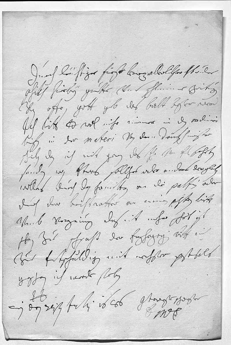0001Durchleüchtiger Fürst, herzallerliebster herr bruder 0002Schikh hierbey guette vnd schlime zeitungen 0003von Offen, gott geb, das balt beßer werd. 0004Ich bitt dero Liebden wol, mihr nimmer in den ordinari 0005brifen in der materi von dem Deütschmeister zu0006schreiben, dan ich nit gern hätte, das ihr Mayestät es seheten, 0007sondern wan etwas sollches oder anders dergleichen, 0008wollens durch den Hamilton an die Palfin oder 0009durch dero beichtvatter an meinen schiken. Bitt 0010vmb verzeiung, das nit mehr schreib, ist 0011schon zue schpaht. Der Erzherzogin bitt mich 0012zue entschuldigen, mit nechster post sols 0013geschen. Ich werde sterben 0014dero Liebden 0015getreweste schwester 0016EMT 0017Wien den 25ten julij 1686