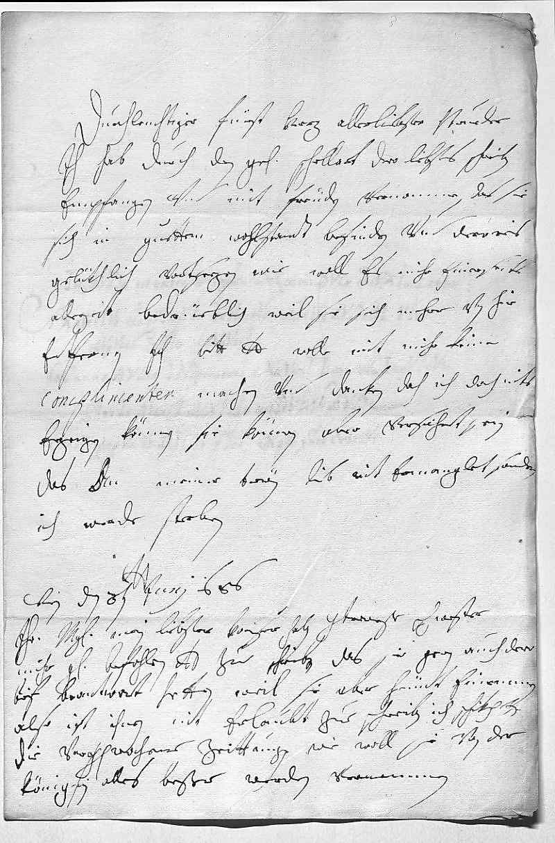 0001Durchleüchtiger Fürst, herz allerliebster herr brueder 0002Ich hab durch den Grav Schellart dero liebstes schreiben 0003empfangen vnd mit freüden vernommen, das sie 0004sich in guettem wohlstandt befinden vnd dero reis 0005gelükhlich vortsezen, wie woll es mihr einerseits 0006allezeit bedrüeblich, weil sie sich mehrer von hir 0007entfernen. Ich bitt, dero Liebden wolle mit mihr keine 0008complimenten machen vnd danken, dah ich doch niks 0009erzeigen können. Sie können aber versichert sein, 0010das an meiner trewen lib nit ermanglet, sondern 0011ich werde sterben 0012dero Liebden 0013getreweste schwester 0014Wien den 3ten junij 1686 0015Ihr Mayestät, mein liebster Kaiser, haben 0016mihr gnädigst befohlen, Durchlaucht zu schreiben, das sie gern auch dero 0017brif beantwort hetten, weil sie aber heünt einemmen 0018also ist ihnen nit erlaubt zue schreiben. Ich schikh im 0019die verschprochene zeittungen, wie woll sie von der 0020Königin alles beßer werden vernemmen.