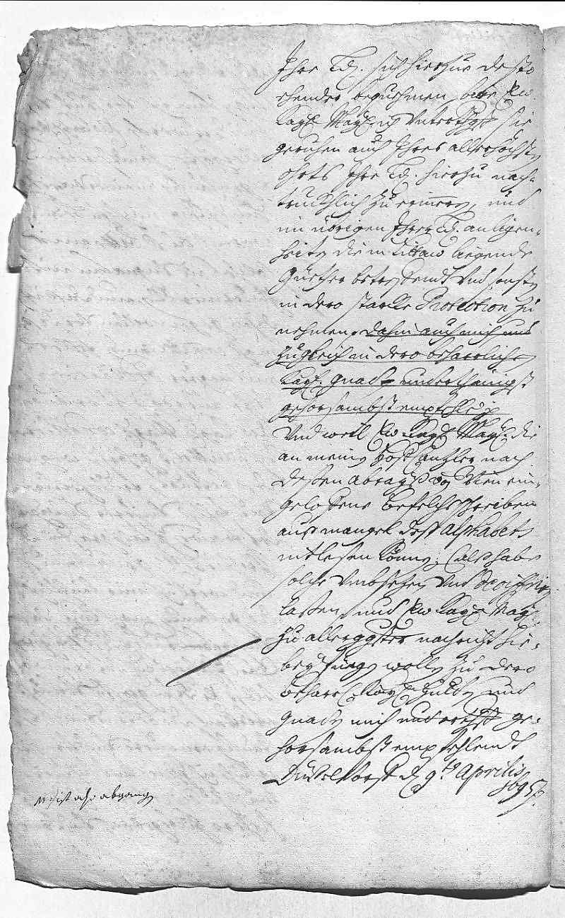 Johann Wilhelm von Pfalz-Neuburg an Eleonora Magdalena von Pfalz-Neuburg, Düsseldorf am 09.04.1695