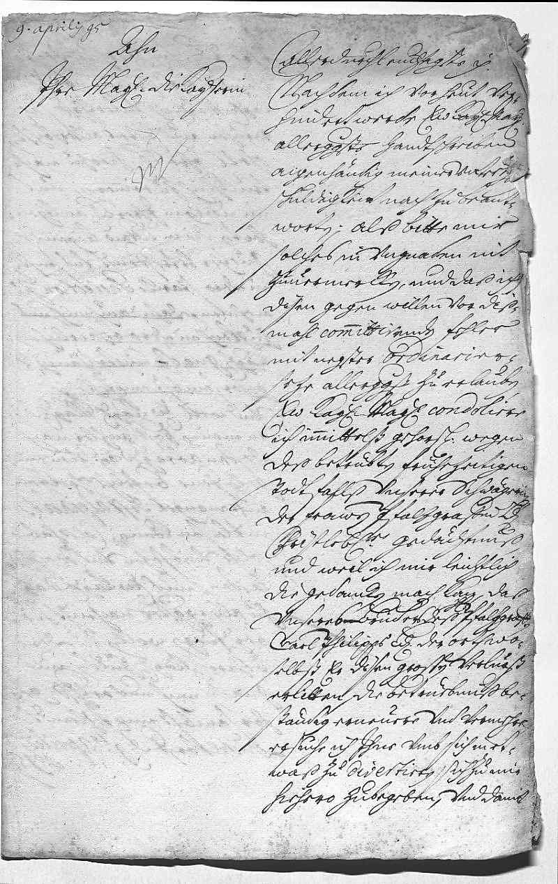 Johann Wilhelm von Pfalz-Neuburg an Eleonora Magdalena von Pfalz-Neuburg, Düsseldorf am 1695.04.09