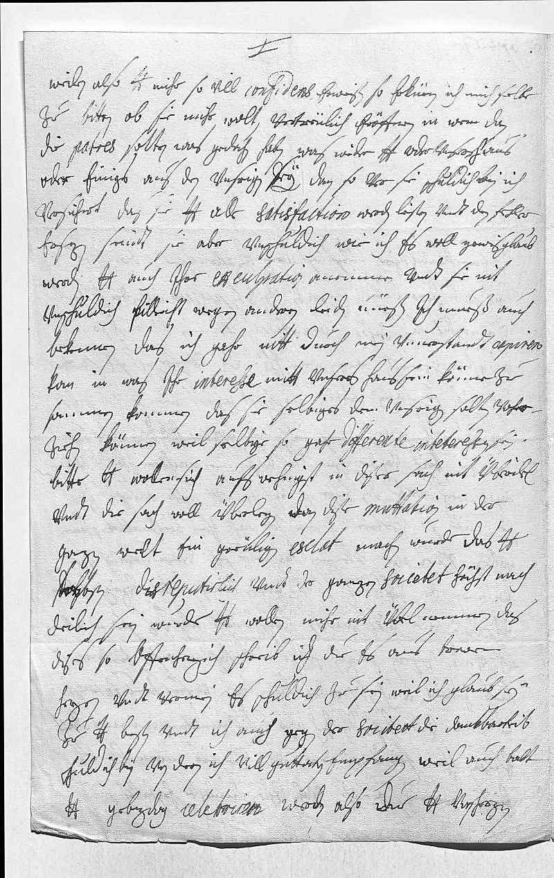 0019Weilen also dero Liebden mihr so vill confidens erweisen, so erküen ich mich, selbe 0020zue bitten, ob sie mihr wolten vetreülich eröffnen, in wem dan 0021die patres solten was gedahn haben, was wider dero Liebden oder vnser haus 0022oder einigs aus den vnsrigen sey, dan so vern sie schuldich, bin ich 0023versichert, das sie dero Liebden alle satisfaction werden leisten vndt den fehler 0024ersezen. Seindt sie aber vnschuldich, wie ich es woll gewis glaub, 0025werden dero Liebden auch ihre exculpation anemmen vndt sie nit 0026vnschuldich filleicht wegen anderen leiden müeßen. Ich mueß auch 0027bekennen, das ich gahr nitt durch mein vnuerstandt capiren 0028kan, in was ihr interesse mitt vnseres haus sein könne zue 0029sammen kommen, das sie selbiges dem vnsrigen solten vohr- 0030ziehn können, weil selbige so gahr differente inteteressen sein. 0031Bitte, dero Liebden wollen sich aufs wehnigst in diser sach nit übereilen 0032vndt die sach woll überlegen, dan dise muttation in der 0033ganzen welt ein greüligen esclat machen wurde, das dero Liebden 0034selbsten disreputirlich vndt der ganzen societet höchst nach- 0035deilich sein wurde. Dero Liebden wollen mihr nit übel nemmen, das 0036dises so offenherzich schreib, ich due es aus trewem 0037herzen vndt vermein es schuldich zu sein, weil ich glaub, es sey 0038zue dero Liebden besten, vndt ich auch gegen der socitett die dankbarkeit 0039schuldich bin, von deren ich vill guttaten empfangen. Weil auch balt 0040dero Liebden geburzdag celebriren werden, also due dero Liebden vonherzen