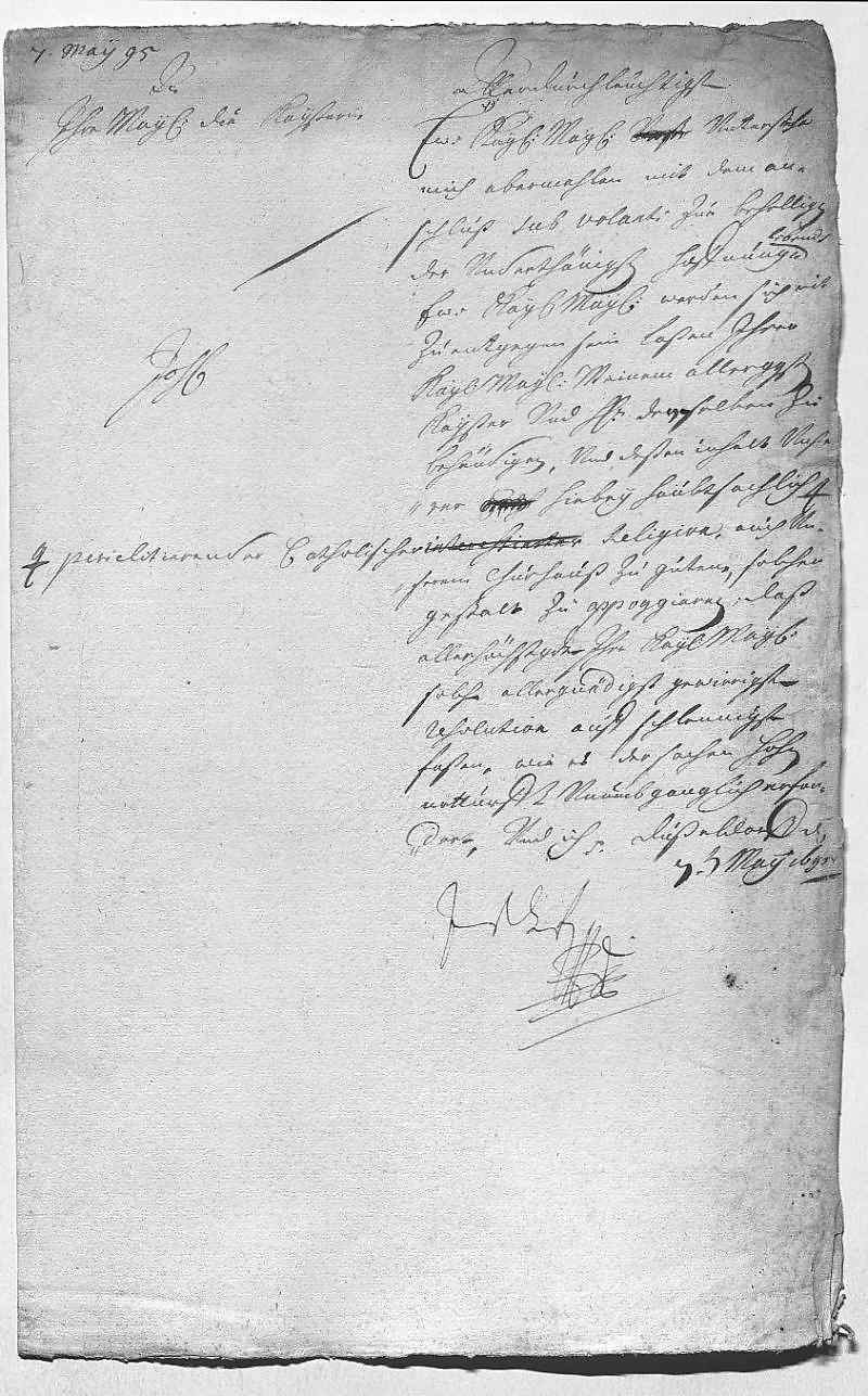 Johann Wilhelm von Pfalz-Neuburg an Eleonora Magdalena von Pfalz-Neuburg, Düsseldorf am 1695.05.07