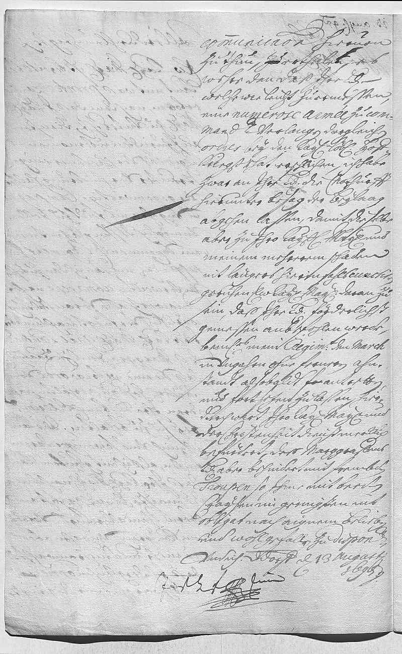 Johann Wilhelm von Pfalz-Neuburg an Eleonora Magdalena von Pfalz-Neuburg, Düsseldorf am 1695.08.13