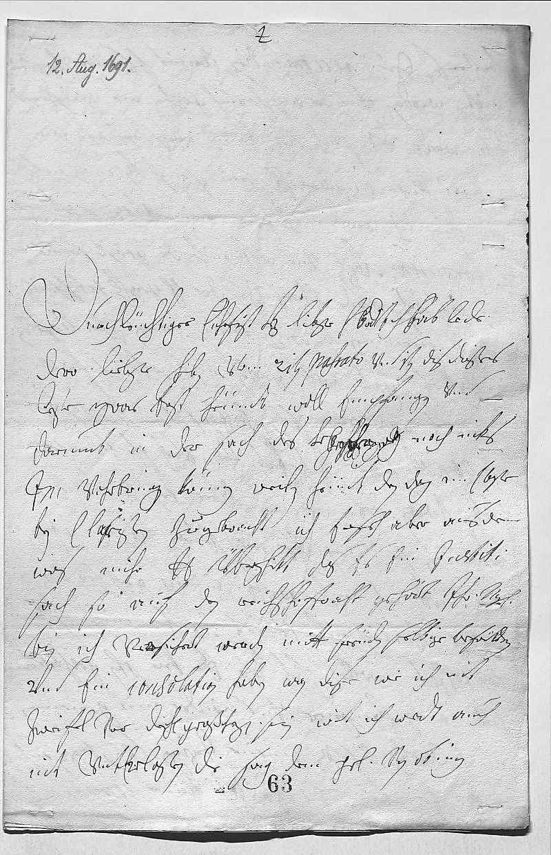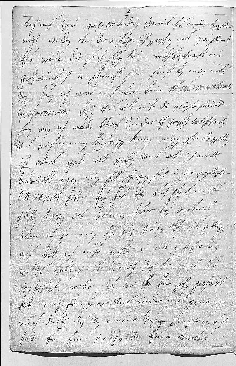 0001Durchleüchtiger Cuhrfürst, herz libster herr bruder . Ich hab bede 0002dero liebste schreiben vom 21ten passato vnd 1ten dis, dißes 0003lezte zwar erst heündt, woll empfangen vnd 0004darumb in der sach des herrn Grosherzog noch niks 0005ihr Mayestät vohrbringen können, weilen heünt den dag im closter 0006bei clarißen zuegebracht. Ich erseh aber aus dem, 0007was mihr dero Liebden überschikt, das es ein justiti 0008sach, so auf den reichshoffraht gehört. Ihr Mayestät, 0009bin ich versichert, werden mitt freüden selbige befördern 0010vnd ein consolation haben, wan dise entscheidung, wie ich nit 0011zweifel, vor den herrn Großherzog sein wirt. Ich werdt auch 0012nit vnterlaßen, die sach dem Graven von Oting