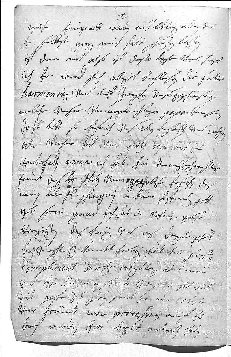 0001Durchleüchtiger Cuhrfürst, mein herzallerlibster herr bruder 0002Ich bitt vmb vergebung meines langen 0003stillschweigens, hab ein mahl nit zeit gehabt. 0004Freüt mich, das mich dero Liebden dero alte affection 0005versichern. Den Deütschmeister betrefent kan ich dero Liebden 0006versichern, das er niks als lieb vohr sie hatt. 0007So lang er iezt hier ist, hatt er weder reformen 0008noch Steinkallenfels ins maul genommen, 0009welches er jah leichter als schriftlich hett duen können. 0010Also sehen dero Liebden, das sie ein vngegrünte meinung 0011von ihm haben. Den Hamilton betrefent freüt mich, 0012wan mein wehnun meinung falsch gewesen, die nuhr 0013aus mihr vnd von nimant andern in der welt