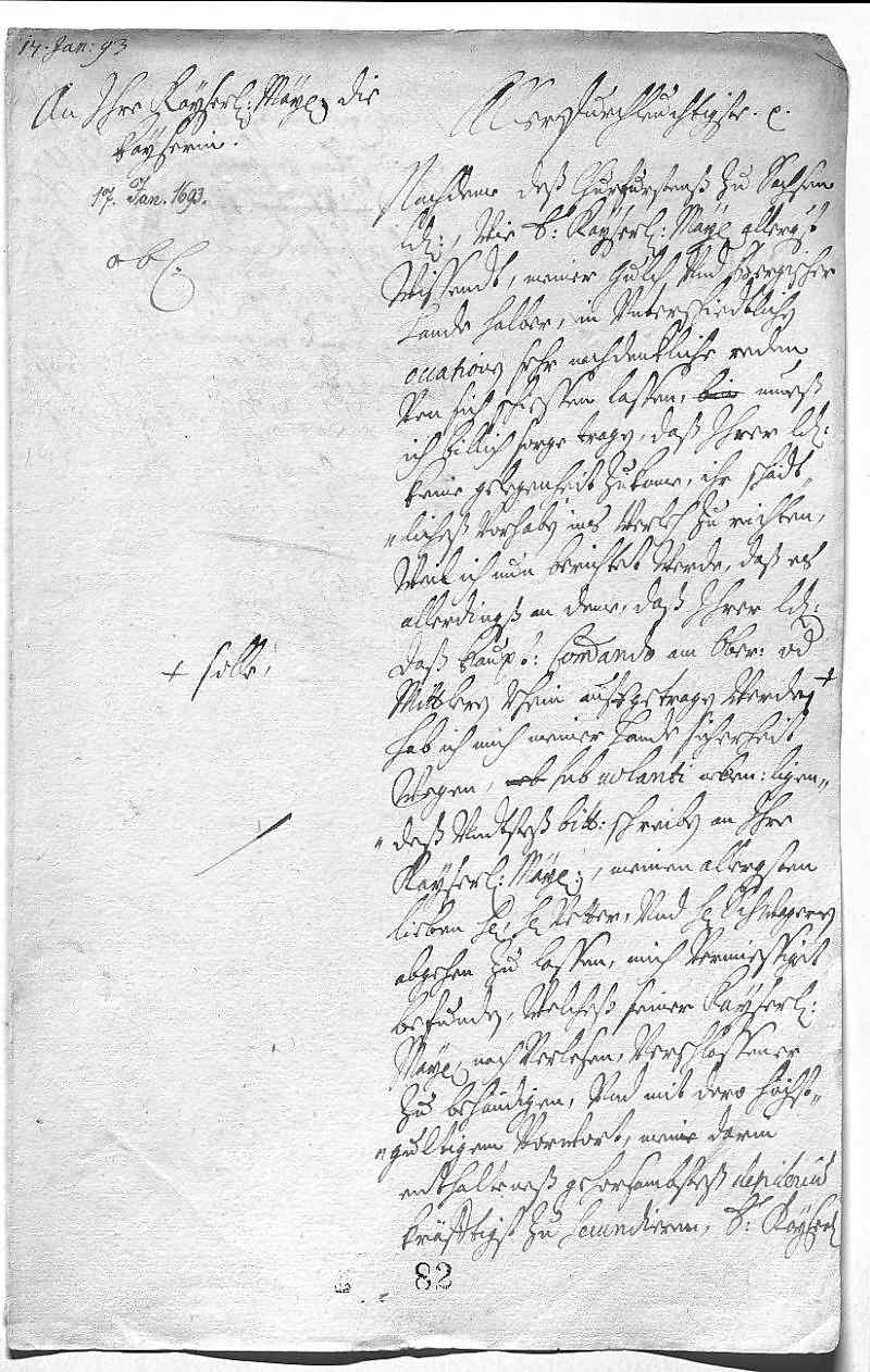 Johann Wilhelm von Pfalz-Neuburg an Eleonora Magdalena von Pfalz-Neuburg, Düsseldorf am 1693.01.17