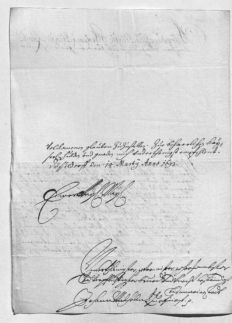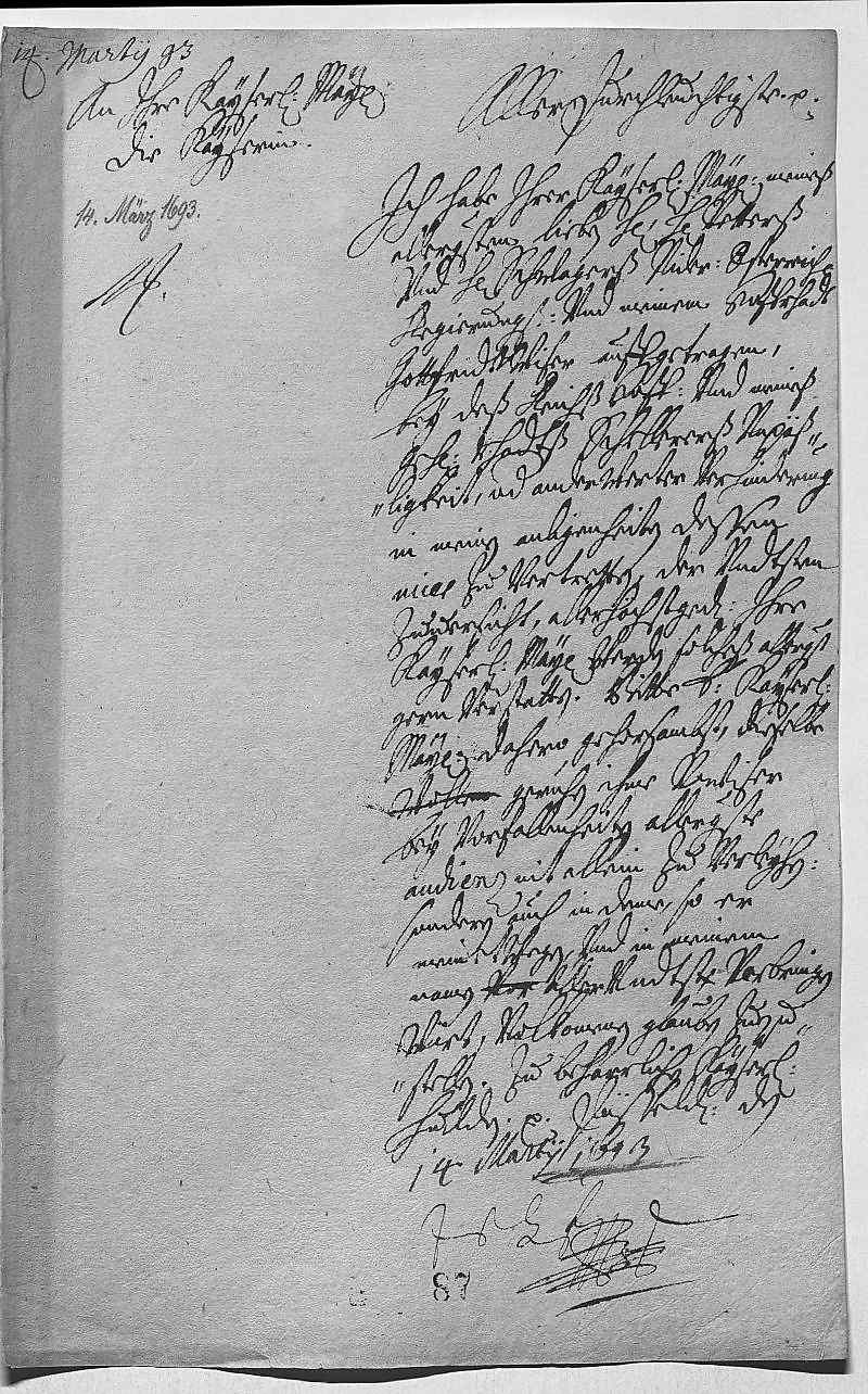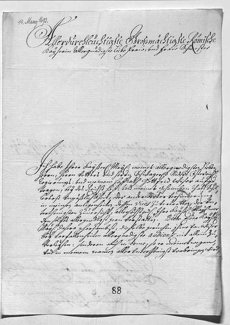 Johann Wilhelm von Pfalz-Neuburg an Eleonora Magdalena von Pfalz-Neuburg, Düsseldorf am 1693.03.14
